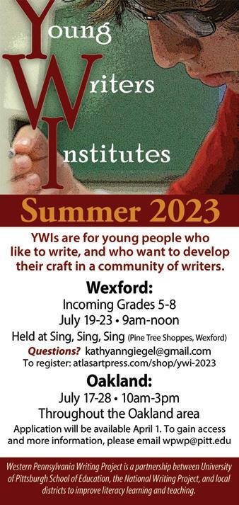Pittsburgh Youth Chorus Summer Singers Day Camp, 9 a.m.-3p.m., June 26-30, Duquesne University School of Music. For details, visit pittsburghyouthchorus.org.