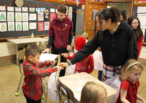 Students at Providence Heights Alpha School celebrated the birth of Baby Jesus on Wednesday, December 21. As part of the school’s focus on sharing and giving back to the community during December, Baby Jesus’s Birthday Celebration kicked off with students preparing 100 care packages for North Hills Community Outreach (NHCO). This nonprofit organization addresses the needs of people in crisis, hardship, and poverty. Younger students were paired with their middle school “buddies” to fill the packages.