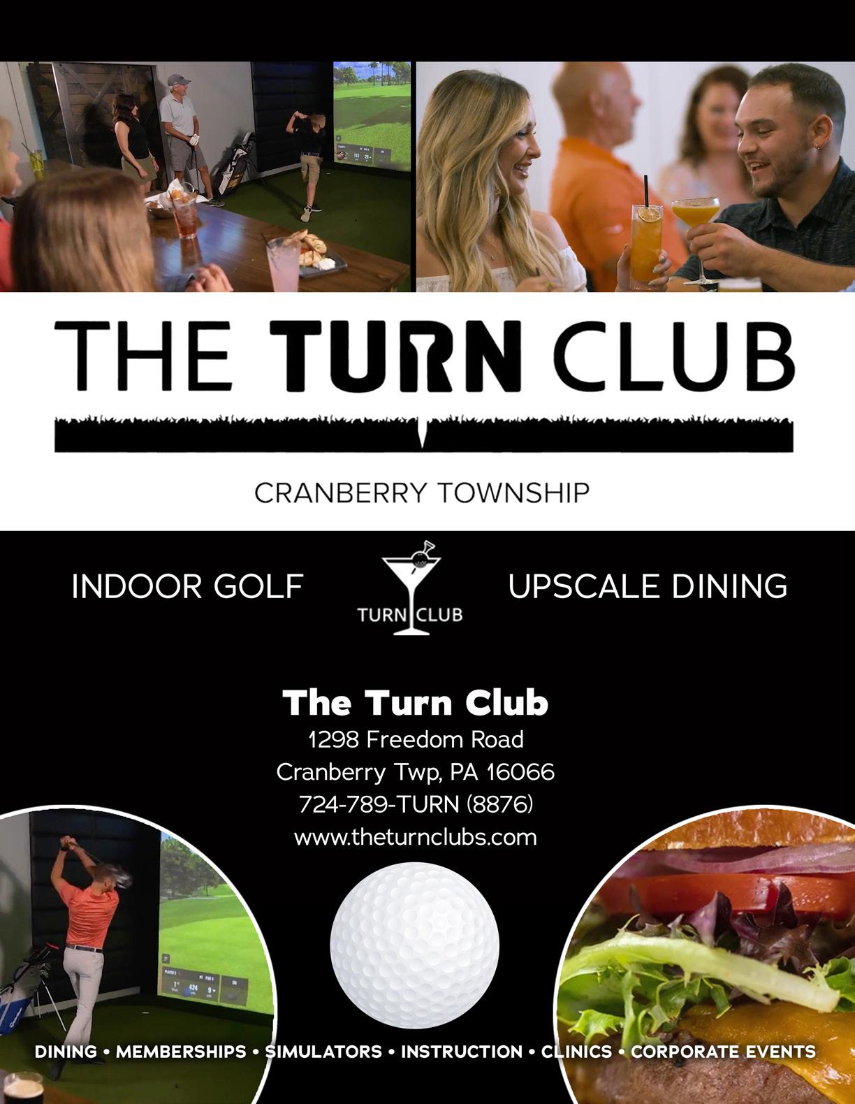 The Turn Club is the new indoor golf, dining and entertainment experience in Cranberry Twp. Located at 1298 Freedom Road, The Turn Club opened July 29. The new 12,000-square-foot complex has a full-service bar and restaurant, including a large patio for outdoor dining, six golf simulation bays, six-hole putting green and onsite instruction for beginners as well as for those wanting to elevate their play.
