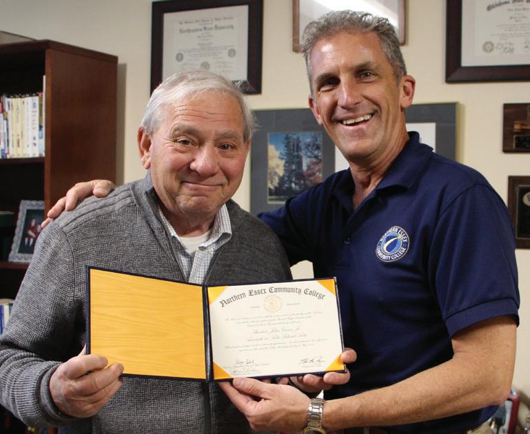 Retired from a career in sales and a second career in the Haverhill Schools, Gaiero kept thinking about that associate degree. When Northern Essex President Lane Glenn learned about Gaiero’s regrets, he arranged to have his credits from Suffolk transferred to Northern Essex, a process which is called reverse transfer. Gaiero received his degree personally from the president this summer. Gaiero was beaming. “It feels phenomenal. I’m just very proud,” he says.