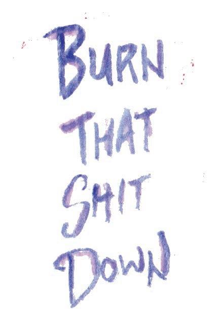 “Throw another one of his goddamn shirts in there,” she slurs at us as she lights another match and flicks it to the gas soaked ground. A whoosh of orange explodes into a fast moving path toward the house, where it disappears from us.