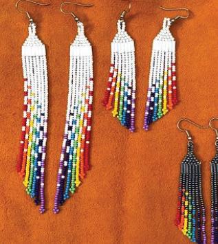 Her painstakingly threaded bead pieces — earrings, patches, necklaces — often feature colors designed to represent trans, pansexual, asexual, bisexual, nonbinary pride, and others.