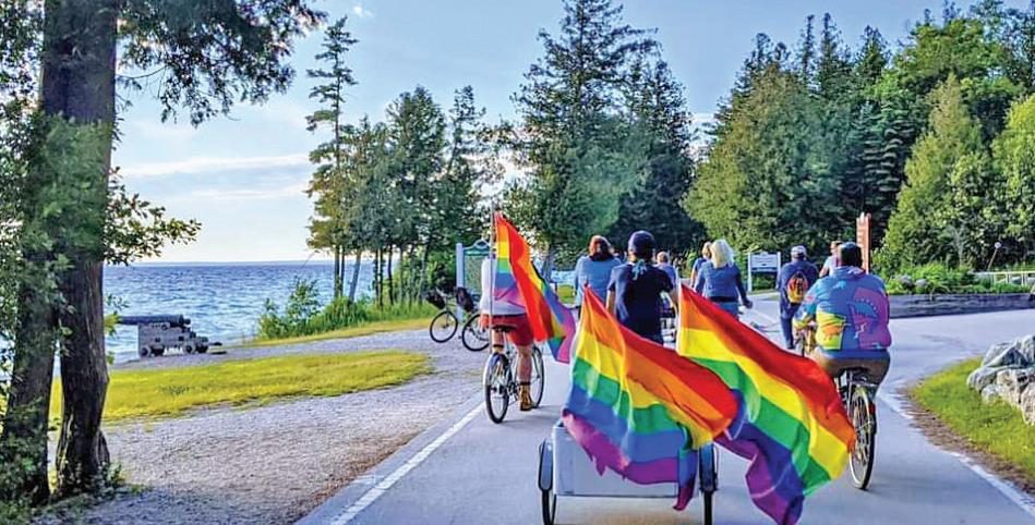 In case you needed another reason to go to Mackinac Island in the summer: Straits Pride hosts a Pride Ride the second Wednesday of each month on Mackinac Island. Riders will meet in Marquette Park at 6pm and ride to British Landing. Bring your own bike but plan to pick up a free pride flag or purchase a T-shirt or other merchandise before you roll from Marquette Park. Upcoming rides are July 14, Aug. 11, and Sept 8. Straits Pride represents lesbian, gay, bi, transgender, and other queer-identifying (LGBTQ) people, lifestyles, and traditions in the area including Mackinac Island, Saint Ignace, Mackinaw City, Cheboygan, and Les Cheneaux. Its goal is to provide and encourage the provision of safe, equitable, and public spaces for LGBTQ people and their allies. Want to support the mission? See straitspride.org. Want to connect without pedaling? The group also hosts gettogethers at the island’s Watercolor Cafe every other Monday for people of all ages to meet and socialize with fellow LGBTQ+ and allies over light refreshments, creative activities, and conversation. More info at straitspride.org