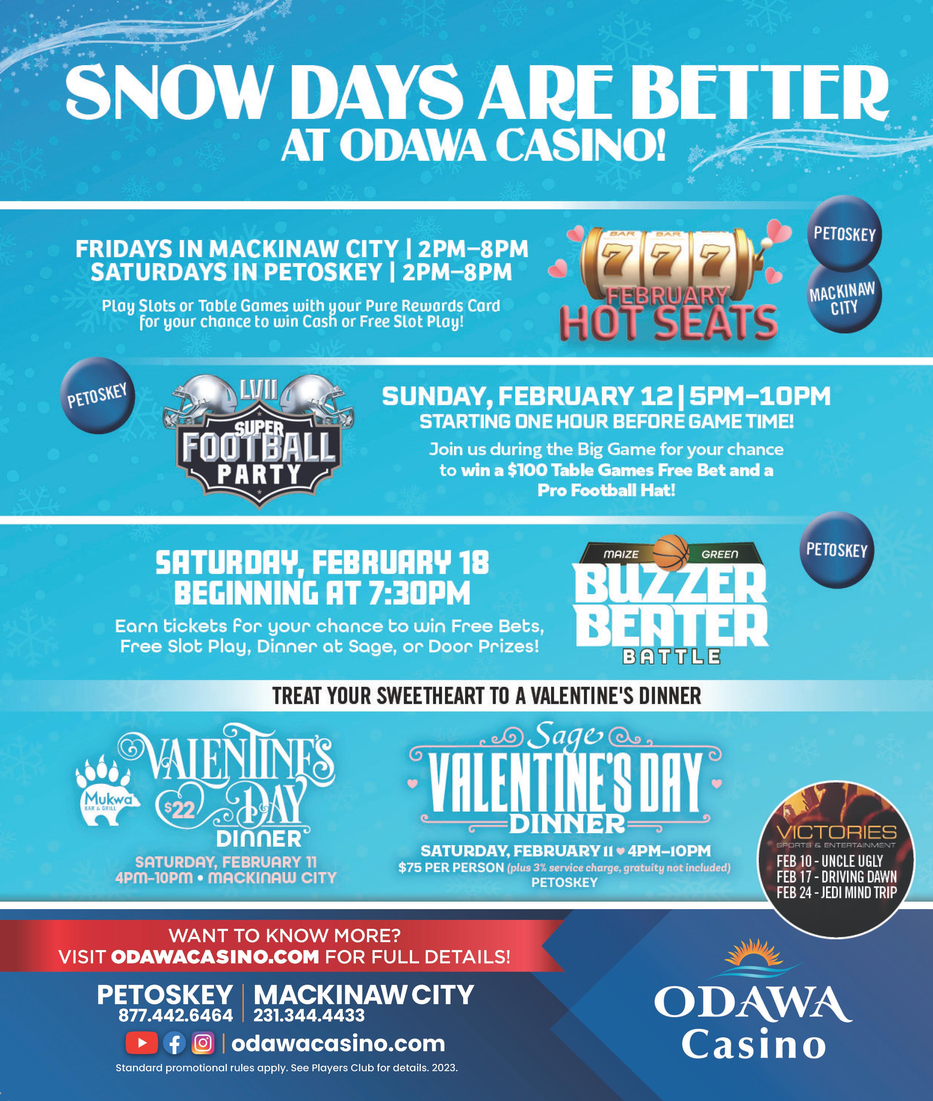 In the Jan. 23 issue of Northern Express, we told you about Suttons Bay’s cool and quirky Yeti Fest on Feb. 18. We said to visit the Leelanau Chamber website for more information, but the most up-to-date details can be found at suttonsbayarea.com/yetifest, and tickets can be purchased at mynorthtickets.com/events/yetifest-2-18-2023.