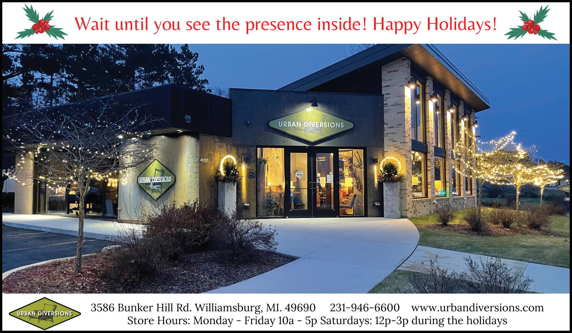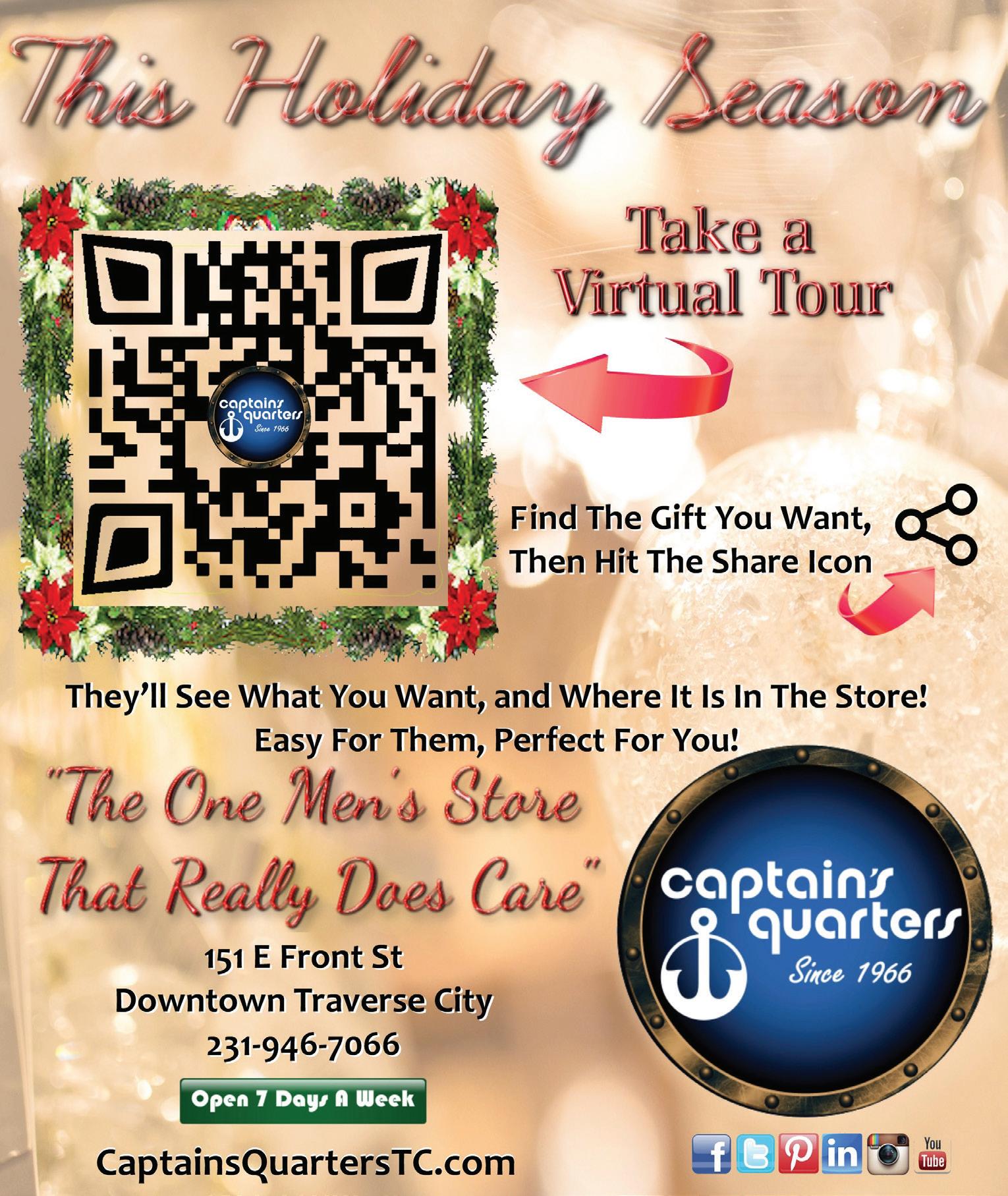 who you really are is one of the best gifts you can give yourself—not only during the holidays, but any time of the year. GIFTS • ART TILE JEWELRY • POTTERY Complimentary wine & cheese on the first Saturday of every month Open Year Round in Alden, Michigan Shop our online store! www.whistlingfrog.net Thanksgiving Day Service 10:30AM Come join us in giving thanks First Church of Christ, Scientist 330 Sixth St, Traverse City Bible Lesson theme: “...my cup overflows.” Psalms 23:5 On Zoom visit: TCCSChurch.org CRYSTAL RIVER OUTFITTE RS RECREATIONAL DISTRICT 6324 W. WESTERN AVE. (M22) • GLEN ARBOR • 231.835.2120 CRYSTALRIVEROUTFITTERS.COM SHOP YOUR FAVORITE BRANDS THIS HOLIDAY SEASON Carve Designs Chaco Corkcicle Faherty Forsake Goodr Hatley Indyeva Johnnie-O OluKai Patagonia Pistil Smartwool Sorel Southern Tide Vineyard Vines Vuori Yeti SHOP THE STYLES OPEN DAILY!