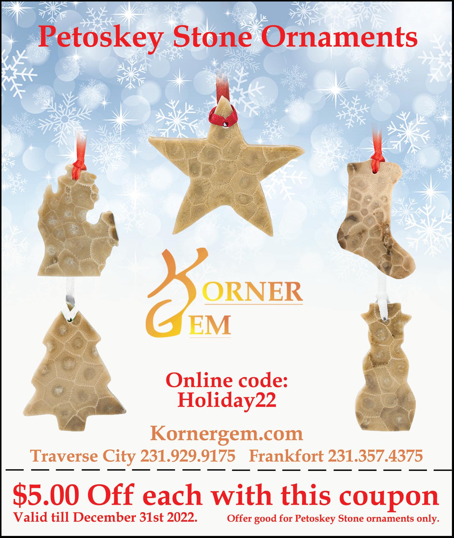 4:30 PM - Community Tree Lighting & Community Caroling (Spring & Hammond St.) 5-7 PM - Jubilee of Trees for 501-C3’s (The Boathouse on Lake Charlevoix, 204 Water St.) 7 PM - Tree Silent Auction Winners Announced (The Boathouse on Lake Charlevoix) 5-8 PM - Participating Businesses Open Houses & Shop Local 5-6 PM - Jordan Valley Community Band will play Christmas Carols at The Boathouse