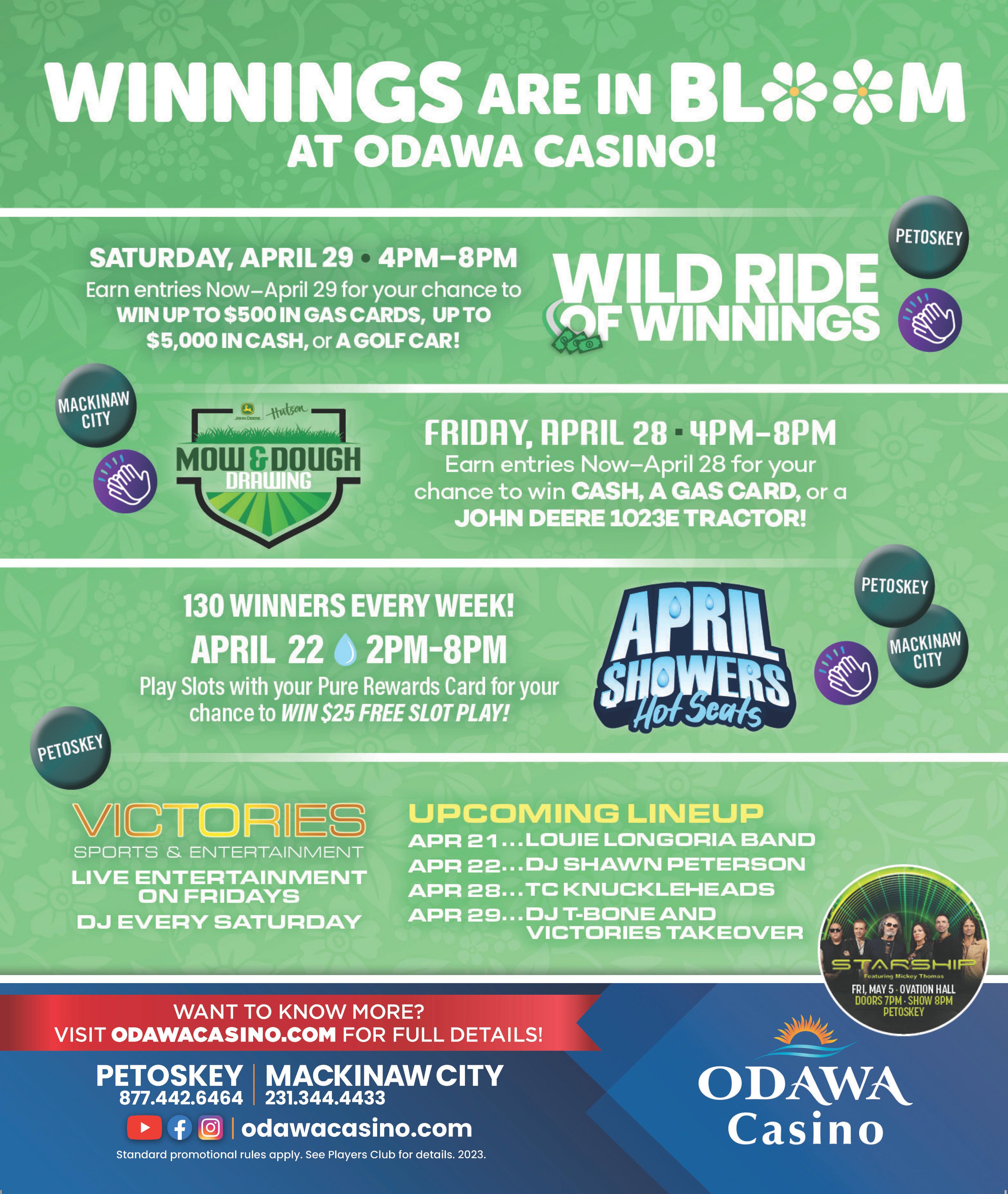 www.dunegrass.co Scan for a higher latitude CANNABIS TuESdayS • SIN featuring • wedNESdayS • Karaoke! ThuRSdayS • featuring FRIdays & SatURDayS • featuring VJ Mike King WED-SAT 5pM - 3aM BURGERS • BRATS CHILI DOGS FRIES & MORE 520 Franklin St • TC • 231-935-1666 sidetraxxtc.com 5pm – 2am • 7 days a week Happy Hour 5 – 9pm NOW OPEN! SATURDAY, APRIL 22 Opening Early! 9am-6pm • Limited Special Record Store Day Releases • Additional New Vinyl Collections • Deals on Equipment, Speakers, and Merch 1015 Hannah Ave. Traverse City 231-947-3169 RPMRecords.net OFF-SEASON SPECIALS! WE ARE CLOSED FOR A SHORT BREAK * OPEN AGAIN 4/4 TUES: DATE NIGHT Buy one entree, get one 1/2 off (Ends Tues 4/25) WED: APRIL SPRING CHICKEN! Featuring fun new poultry recipes & 15% off bottles of wine (Ends Wed 4/26) THURS: PASTA SPECIAL 2 pasta dinners & a bottle of wine $59 (Ends Thurs 4/27) * Sorry specials not available for take-out * Some restrictions may apply Open Tues - Sat @ 5:30 4566 W. MacFarlane Rd 'Burdickville' trattoria-funistrada.com reservations 231-334-3900