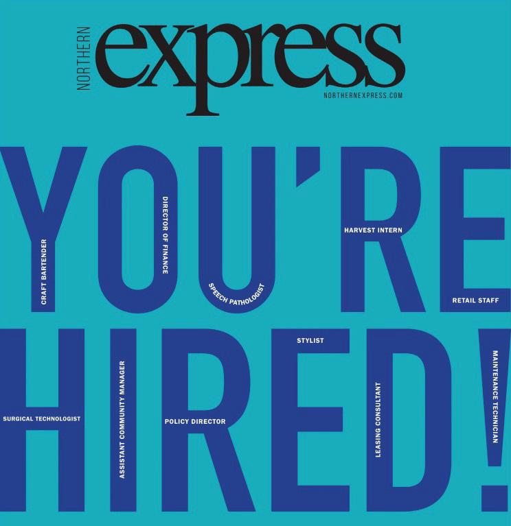 With spring just around the corner, Northern Express is looking ahead to our “Now Hiring” issue, which will be online and on newsstands April 22. We dedicate a special portion of the issue to job listings from across the region, so this is your chance to post all those must-fill summer jobs as we head into the busy season in northern Michigan! There is no limit to the number of positions you may submit, though we do not guarantee publication of all jobs. To submit a job posting, head to northernexpress. com/jobs. You’ll need to have the following information handy: employer name, position title, position type, pay range, city, a brief description, and a contact email or phone number. We recommend sharing your openings as soon as possible and updating us if they are filled. Happy hiring!