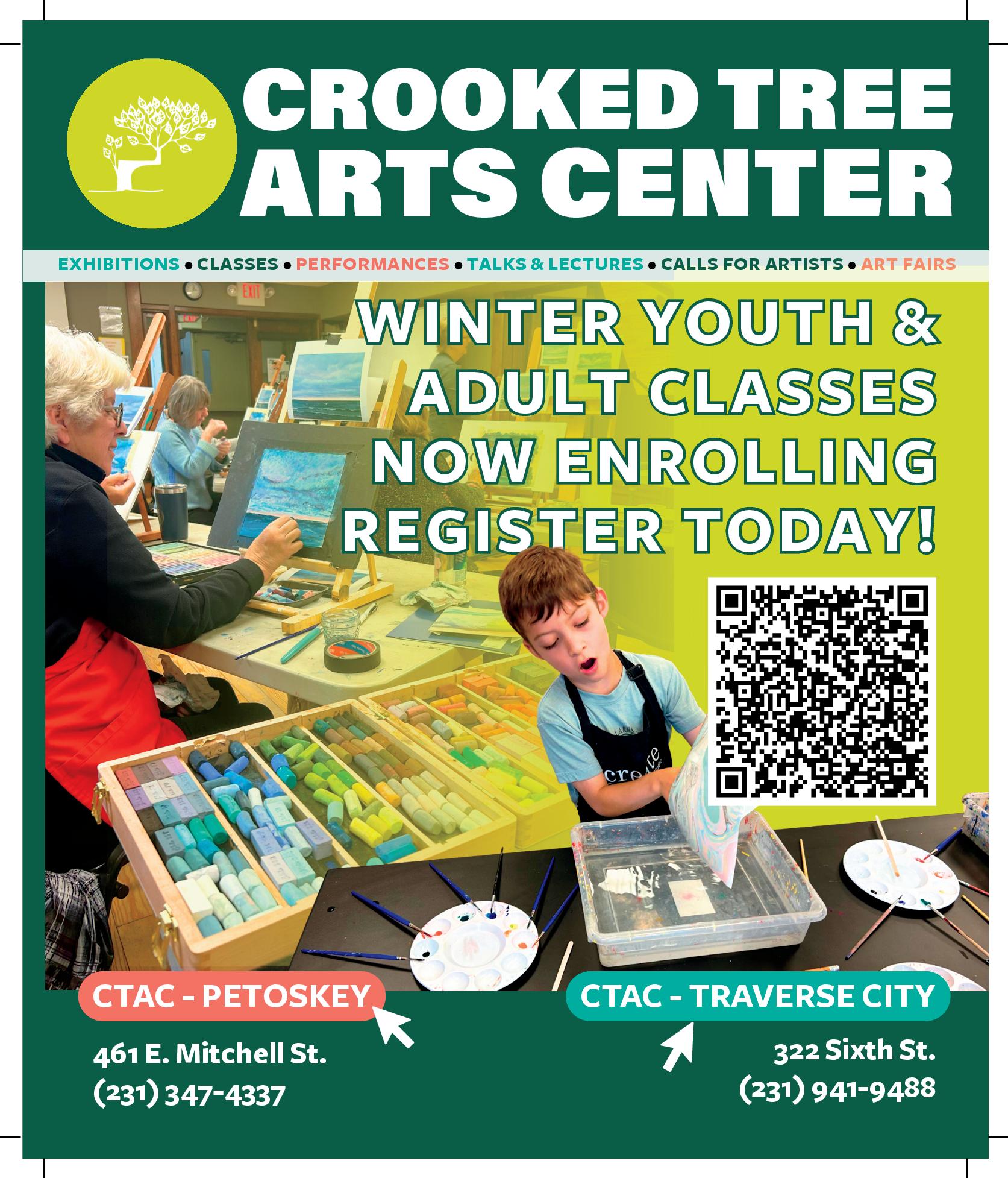 Those two things don’t always go together, but on Dec. 19, you’ll see both out and about in Petoskey and Harbor Springs! Petoskey welcomes dudes for their annual Men’s Night Out from 5-8pm with savings, prizes, and light bites at participating businesses, followed by an after party at Malted Vinyl, starting at 8pm and complete with a raffle drawing. See more at petoskeydowntown. com/events/mens-night-out. Just north, the wooly wear will be out in full force at Pond Hill Farm, where Ugly Sweater Bingo Night runs from 6-8pm. The holly jolly evening features farm prizes for bingo winners, holiday tunes, and plenty of food and drink from the Pond Hill kitchens. Come for the free bingo, stay for a pizza and a beer…and to judge who among you truly has the ugliest sweater. Visit pondhill.com for details.