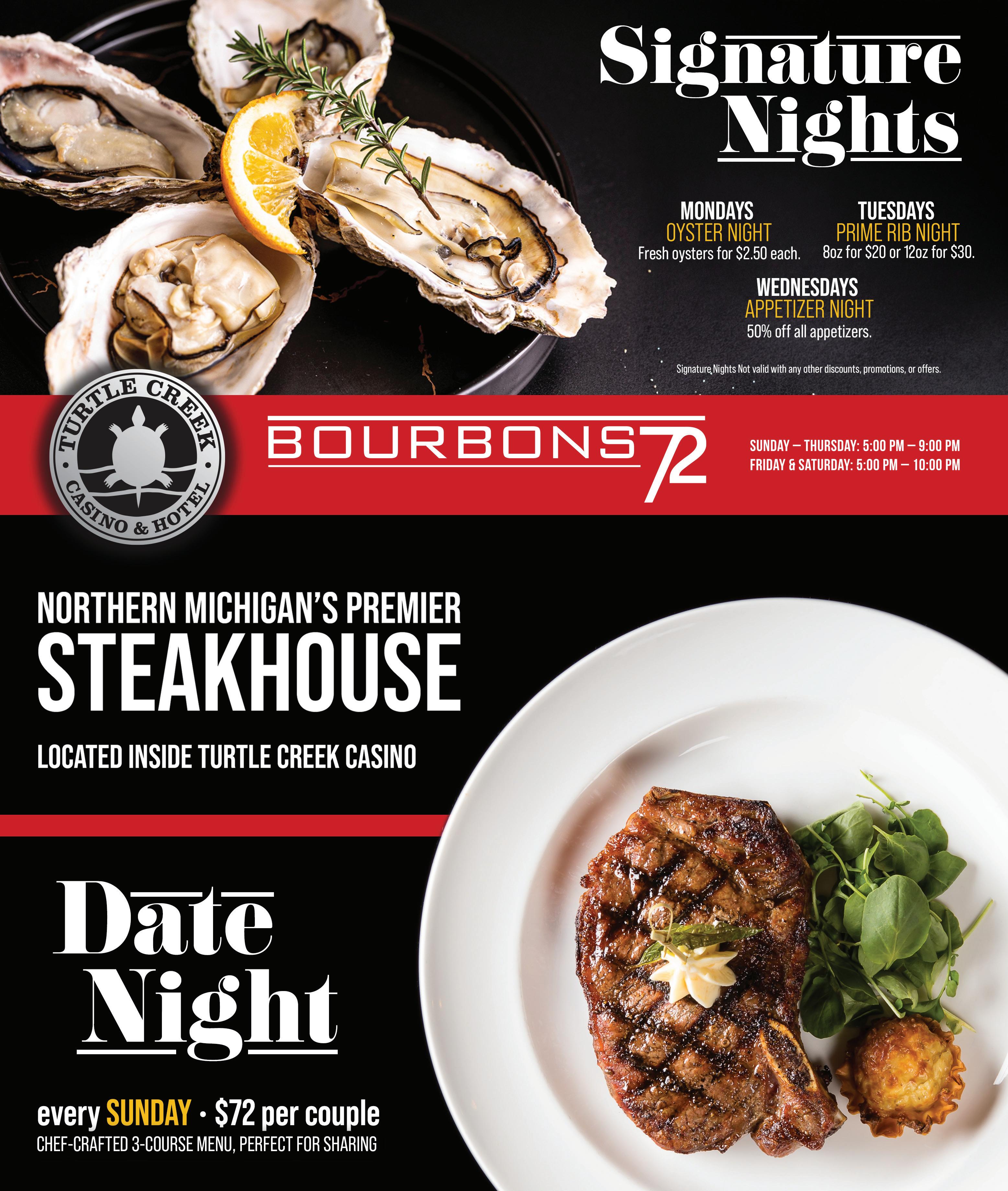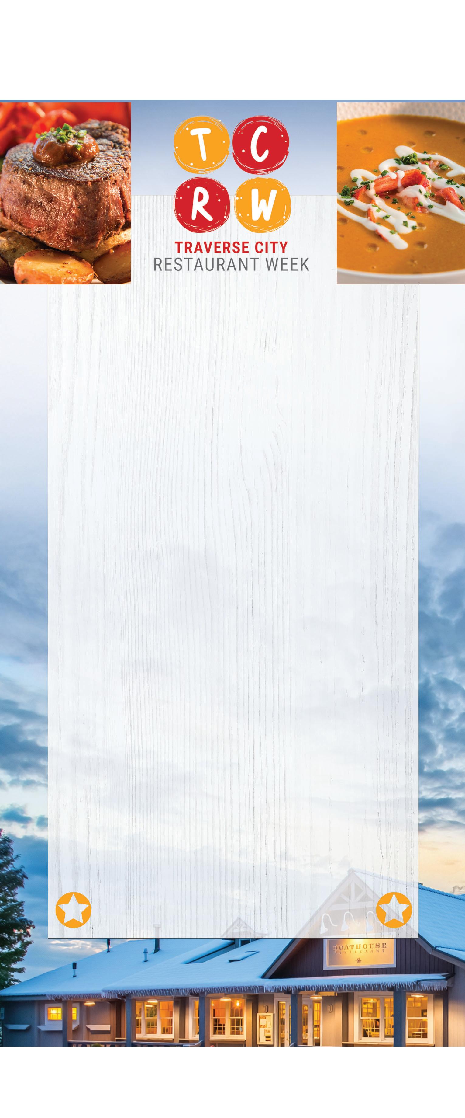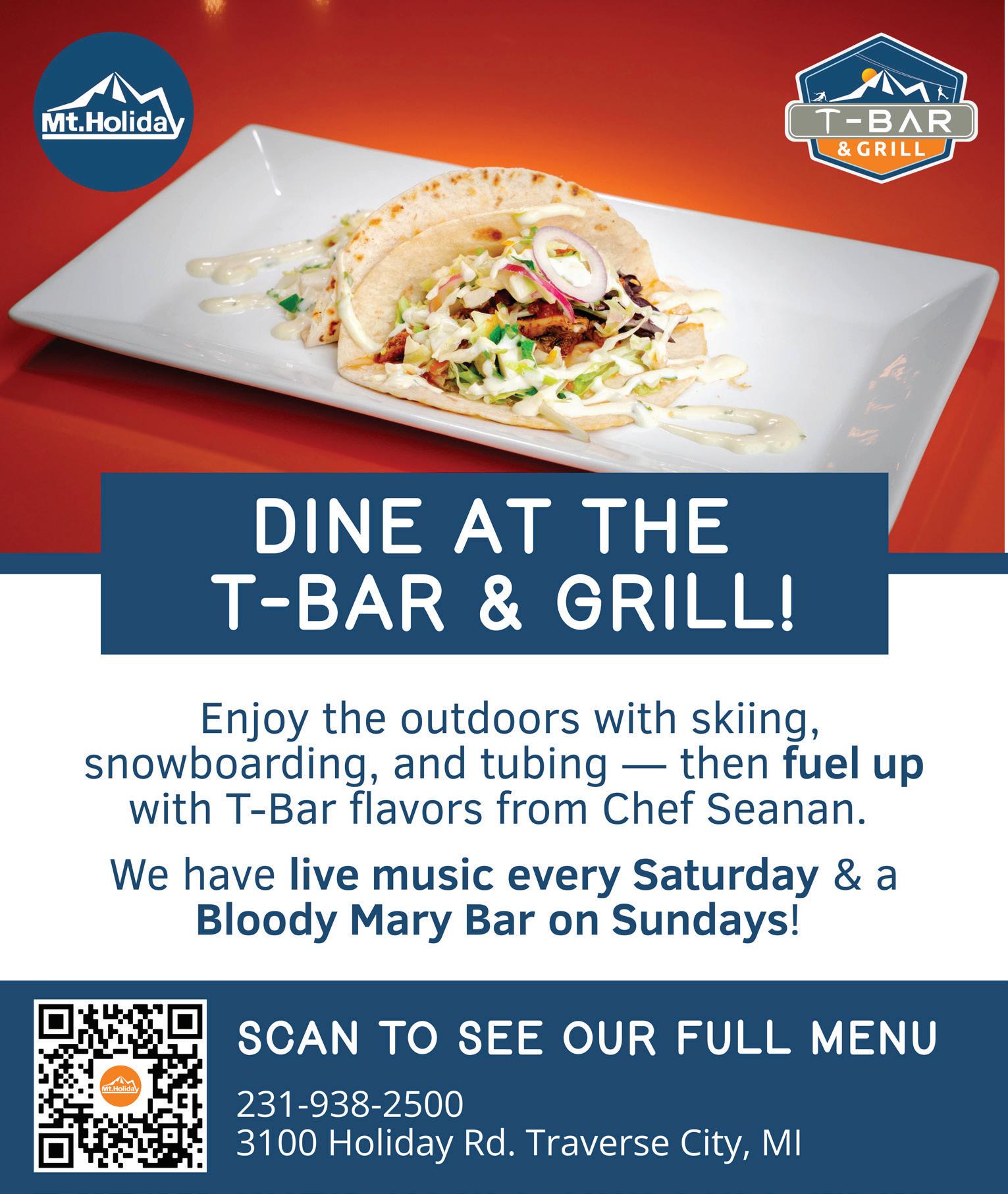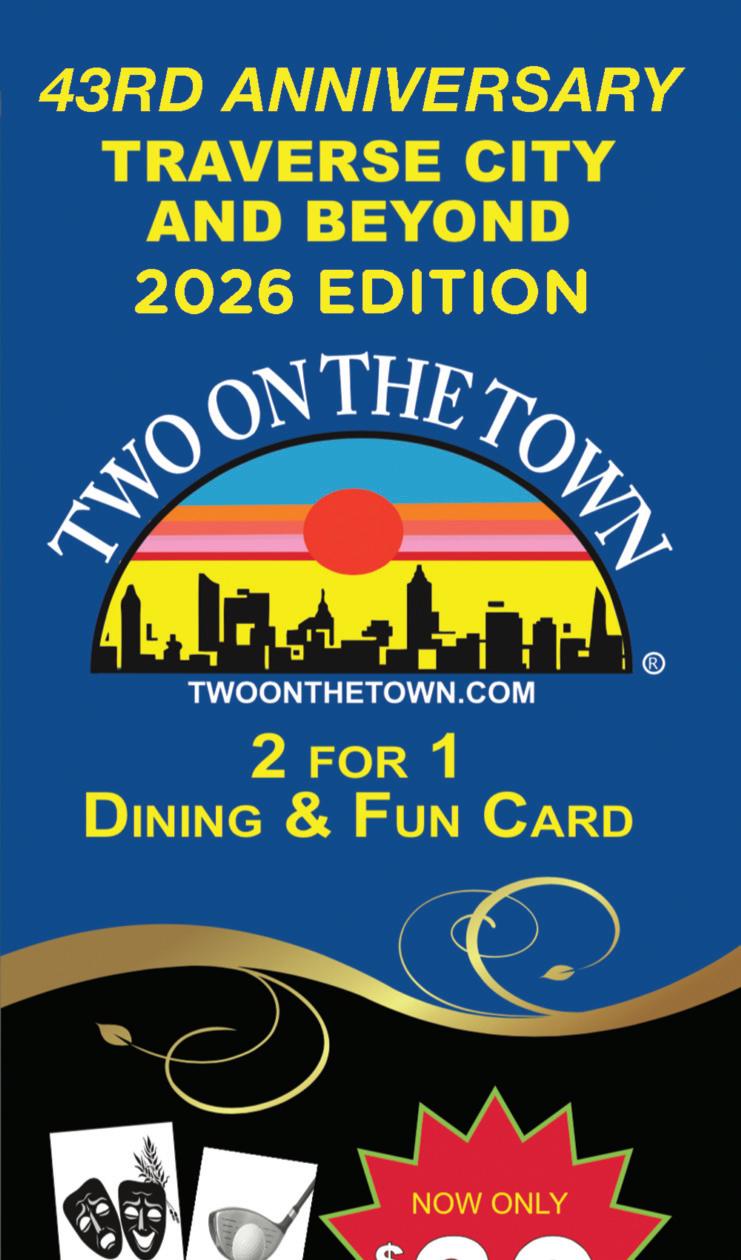 This might just be one of our favorite stretches of winter: restaurant week times two! First up is Harbor Springs Restaurant Week, which kicks off on Friday, Feb. 20, and runs through Sunday, March 1. See all participating restaurants (16 of them at last count!) at harborspringschamber. com/events/details/2026restaurant-week-18667. There’s some delicious overlap to the south, where Traverse City Restaurant Week lures diners in from Sunday, Feb. 22, to Saturday, Feb. 28. In TC, there’s a digital passport that helps you scope out the 50+ menus and get directions, plus enters you into drawings for $50 restaurant gift cards. This restaurant week is a bit more spread out, with restaurants from Acme to Old Mission Peninsula to Grawn in addition to the downtown hotspots. Details are here: downtowntc.com/traverse-cityrestaurant-week.