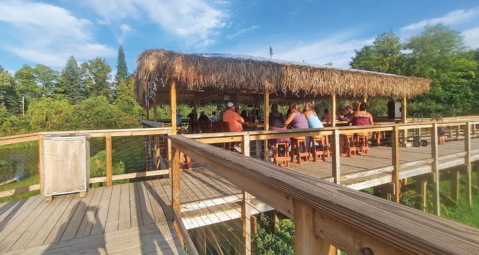 dollar bills reminiscent of a Key West vibe—features local craft beer and summery cocktails with live music on the weekends. Patrons can watch kayakers float by or come in for a landing after a trip on the Upper Platte, or relax around a fire and enjoy a summer night along the river.