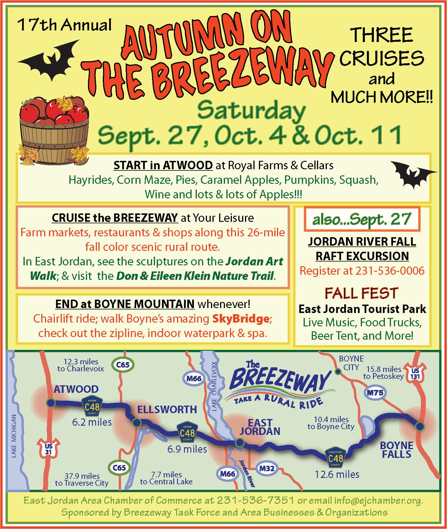 Fall festivals are definitely in the air, and headlining this week is Leelanau UnCaged! With continuous live music on the streets of Northport from noon-10pm, Sat., Sept. 27, you’ll find seven stages and 34 acts, plus a water blessing over the bay, art activities, craft vendors, and much more. On the same day is also the Elk Rapids Fall Festival on River St. downtown from noon-5pm and the Harvest Festival in downtown Boyne City from 9am-3pm with children’s games, local harvests, and fall fun!