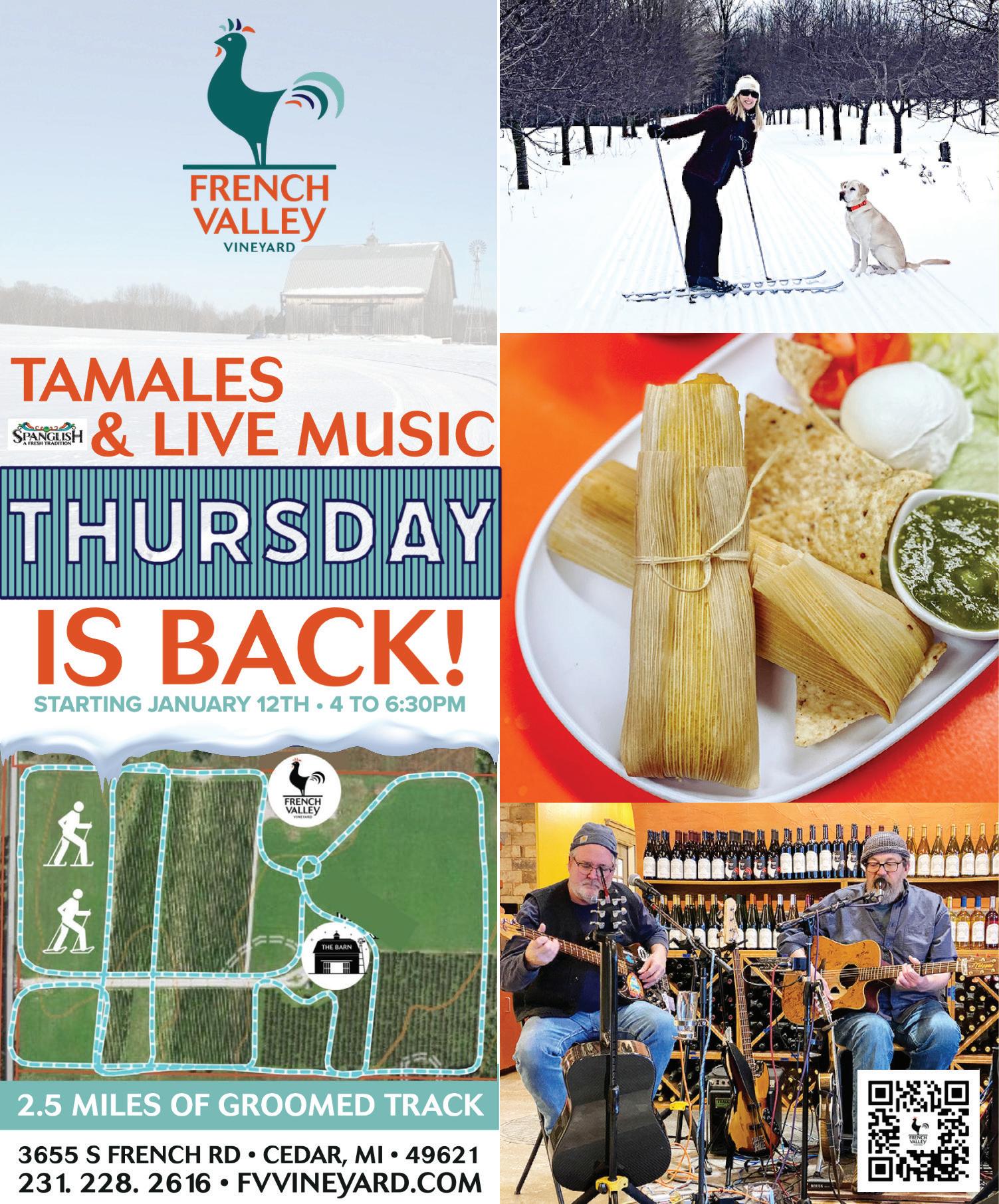 on Christmas Day. Donations of gently-used winter clothing and household items, plus non-perishable foods, will be collected for local food pantries. Details at shantycreek.com/event/ski-free-santa-2. 2 tastemaker this week’s 5 Hey, Watch It! Wednesday 4 Santa on Skis “IS IT A CHRISTMAS MOVIE?” Our first ever movie Monday will answer the question “is it a Christmas movie?” MONDAYDEC 26 ON TUESDAYS, WE EAT TACOS Specials all day on our tacos and the introduction of our new Taco Pizza! TUESDAYDEC 27 AFTER CHRISTMAS BLUES Everyone gets the blues after Christmas so we’re throwing a blues party! Blues music and food and drink specials. FRIDAYDEC 30 NEW YEARS EVE HOT HONEY PARTY We’re ringing in the new year with music from Benzie’s favorite, Barefoot, and releasing our hot honey with special pricing on cases and a special menu! 841 S PIONEER RD • BEULAH, MI SATURDAYDEC 31 WE SCREAM FOR ICE CREAM We’ve teamed up with Hill Top Soda Shoppe to bring you floats and shakes like you’ve never had before! THURSDAYDEC 29 Wii BOWLING TOURNAMENT We’re breaking out the Wii Sports so get your team ready to roll. Prizes for the top scorers! WEDNESDAYDEC 28 @ ST. AMBROSE THERE’S ONLY ONE WEEK LEFT UNTIL 2023 AND WE’RE HERE TO HELP YOU MAKE THE MOST OF YOUR DECEMBER 2631 SCAN FOR MORE DETAILS FLIGHT SPECIALS ALL WEEK!