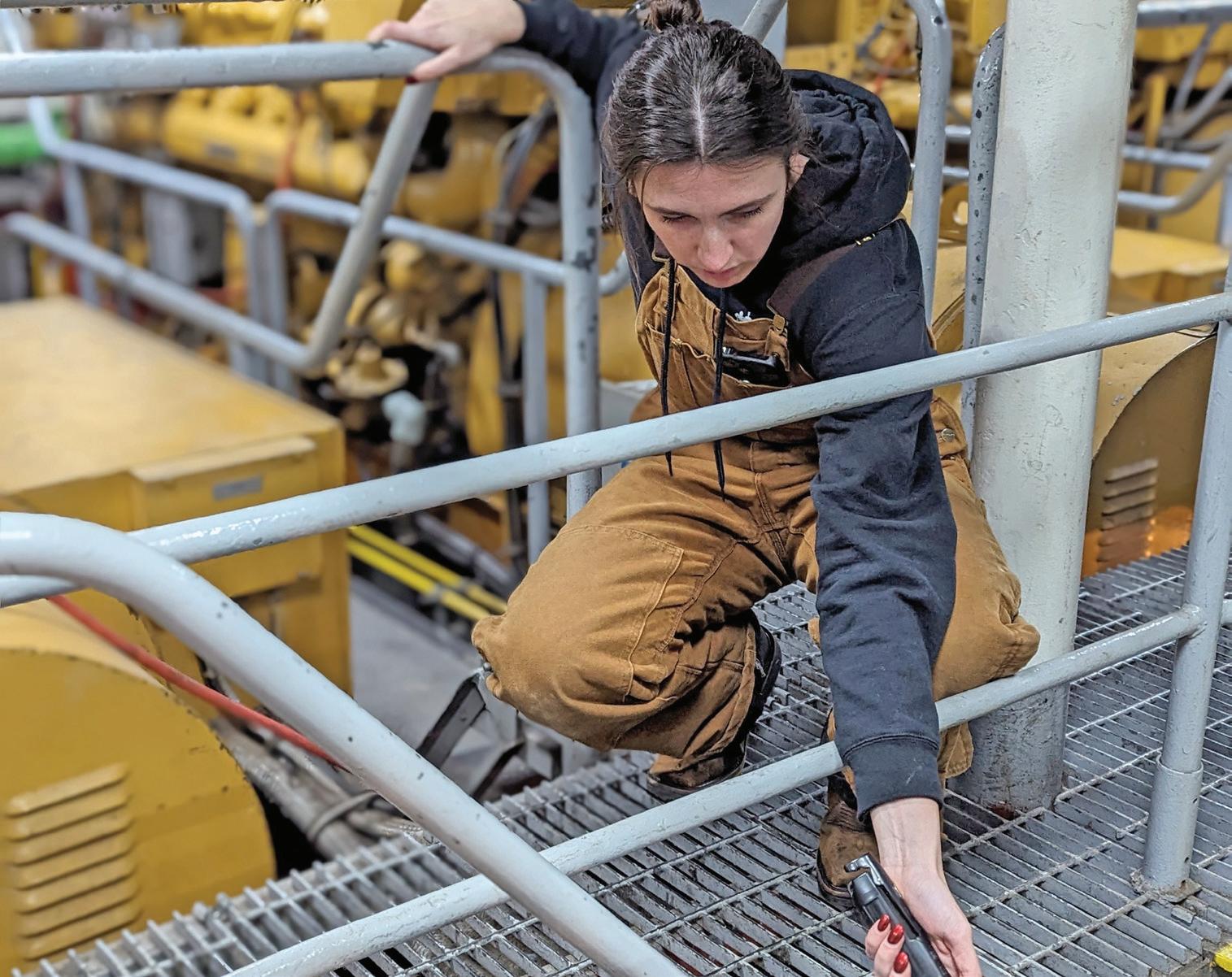 Tess Lepley in the engine room aboard the T/S State of Michigan.