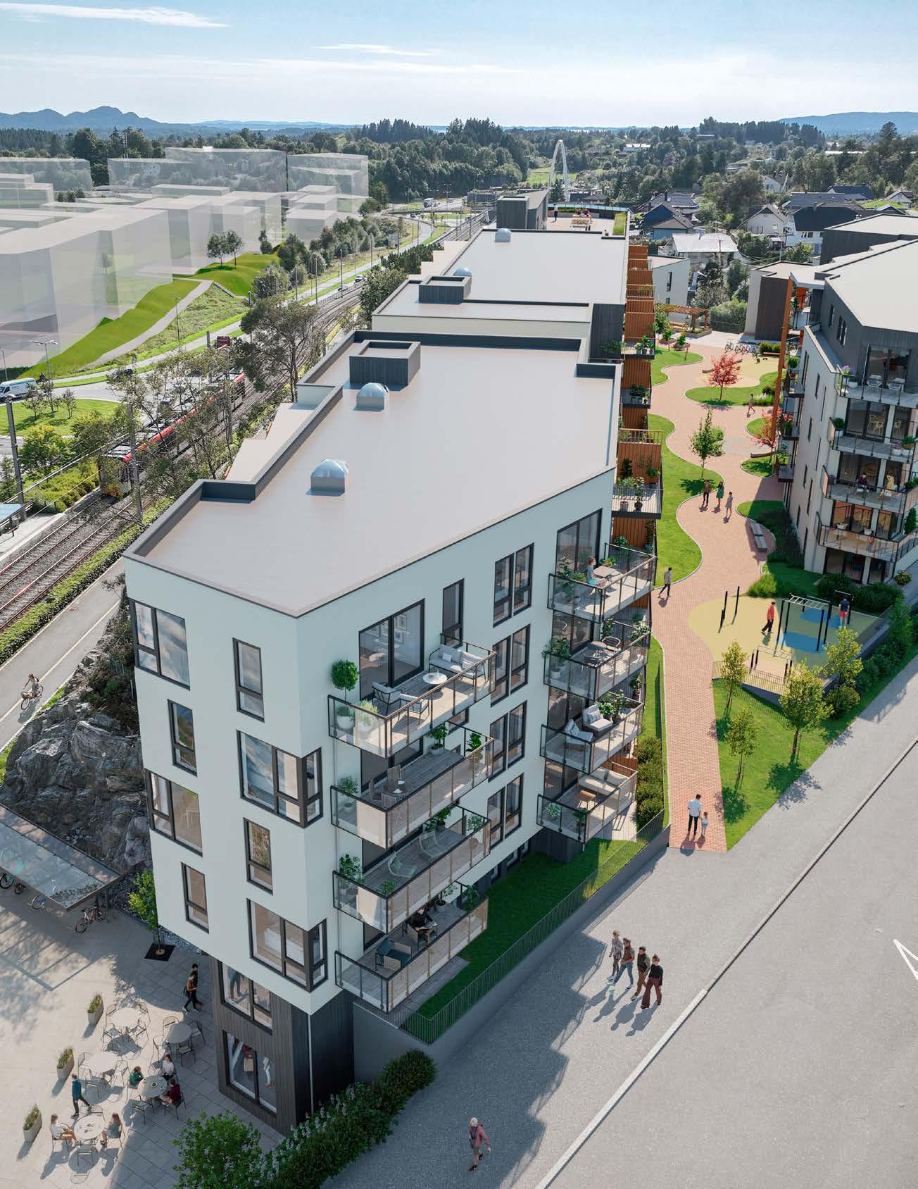 Vi har kalt konseptet vårt for Bo, Leve, Jobbe, og formet Kokstad Stasjon Eikerinden etter dette:
