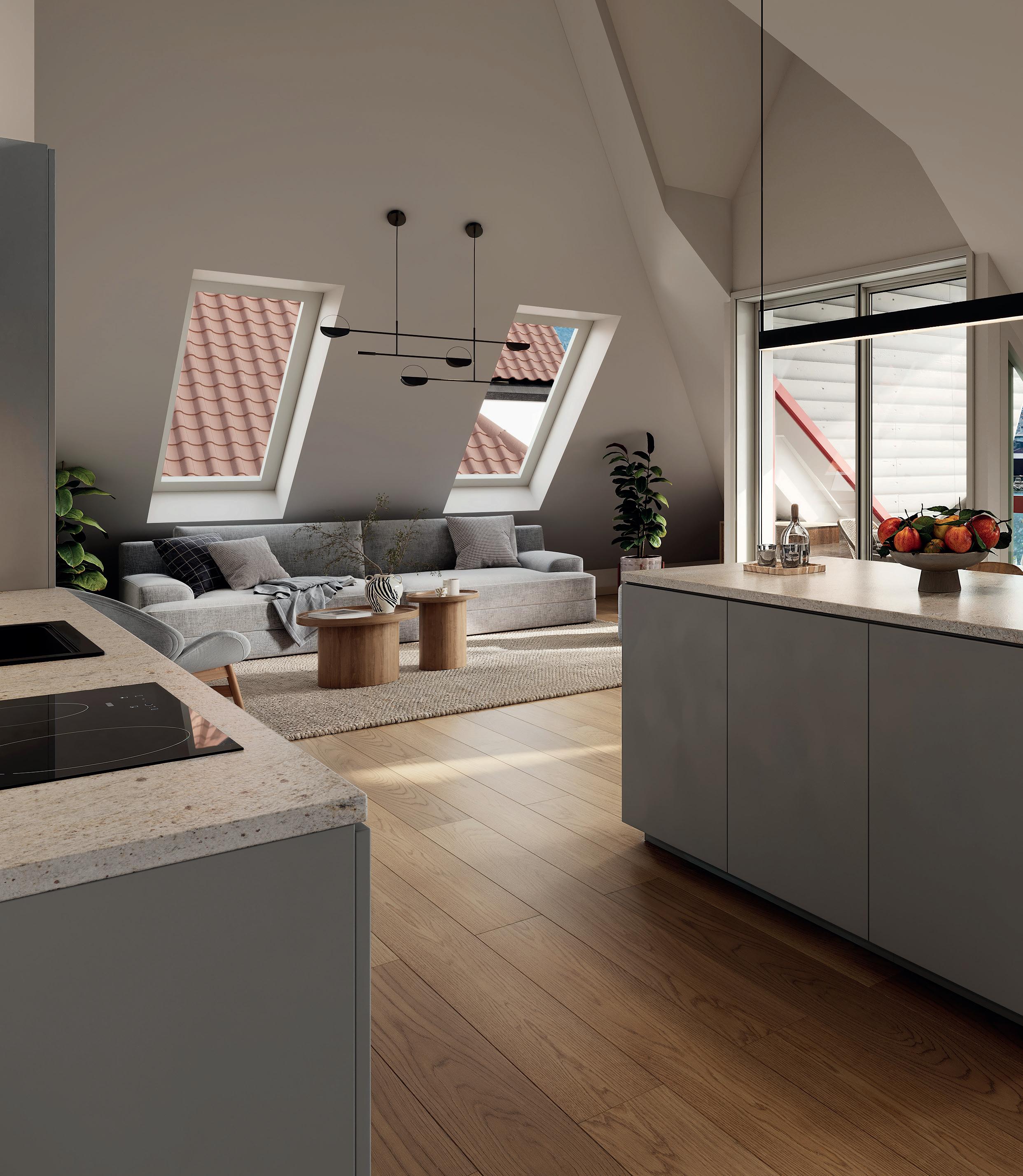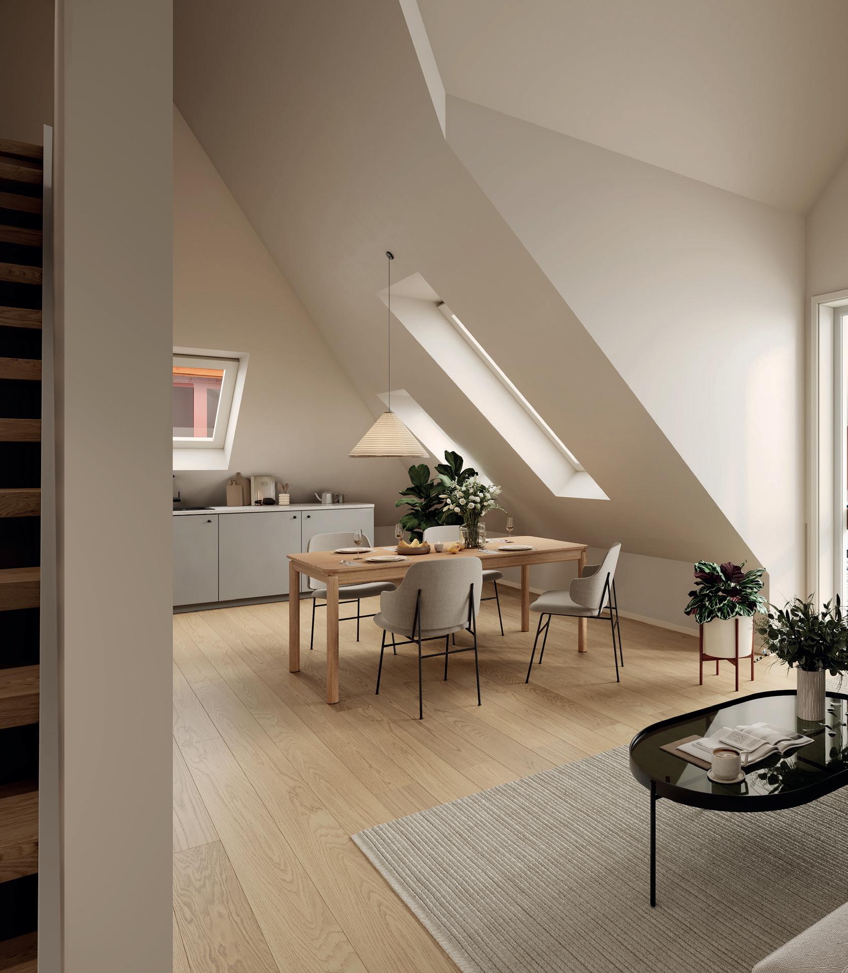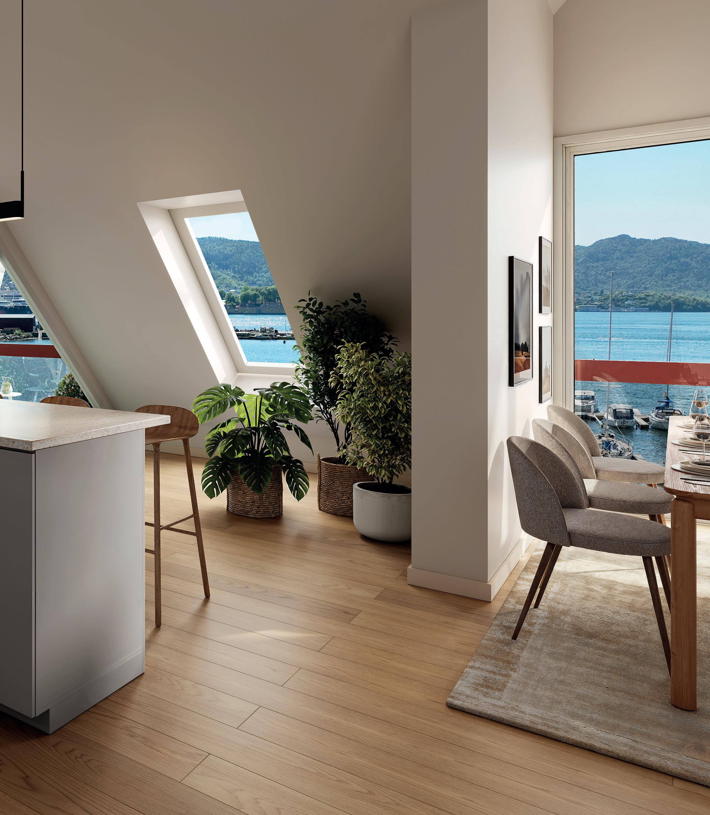 Leiligheter i øverste etasjer får også ekstra karakter med sjarmerende skråtak.