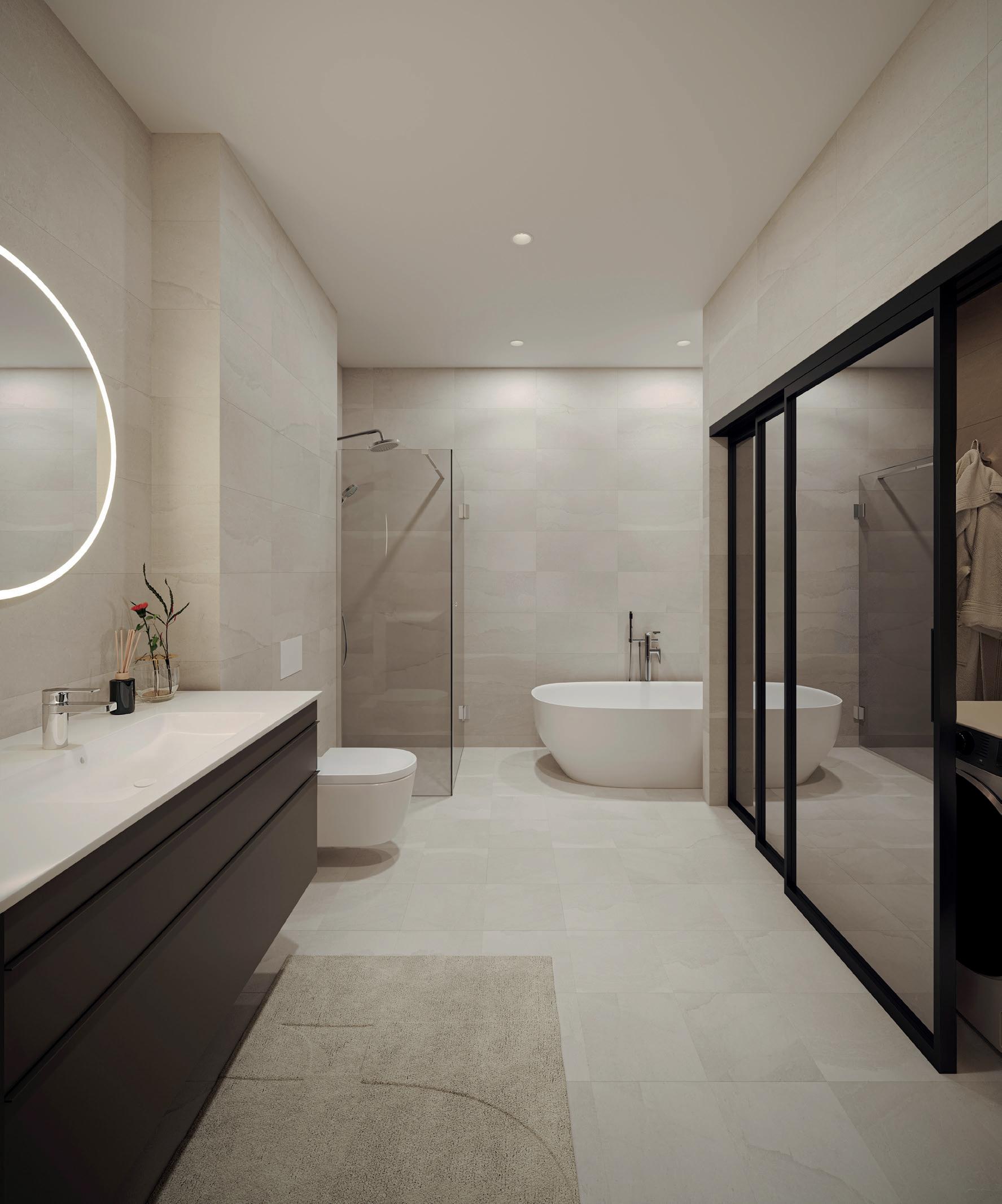 animasjoner, skisser, ”møblerte” plantegninger m.m. er kun ment å danne et inntrykk av den ferdige bebyggelsen, og kan ikke anses som endelig leveranse. Det kan derfor fremkomme elementer i presentasjonsmaterialet som ikke inngår i leveransen. Inventar som er merket med stiplete linjer medfølger ikke. Generelle beskrivelser av prosjektet i salgsog markedsføringsmateriell vil ikke passe for alle boligene.