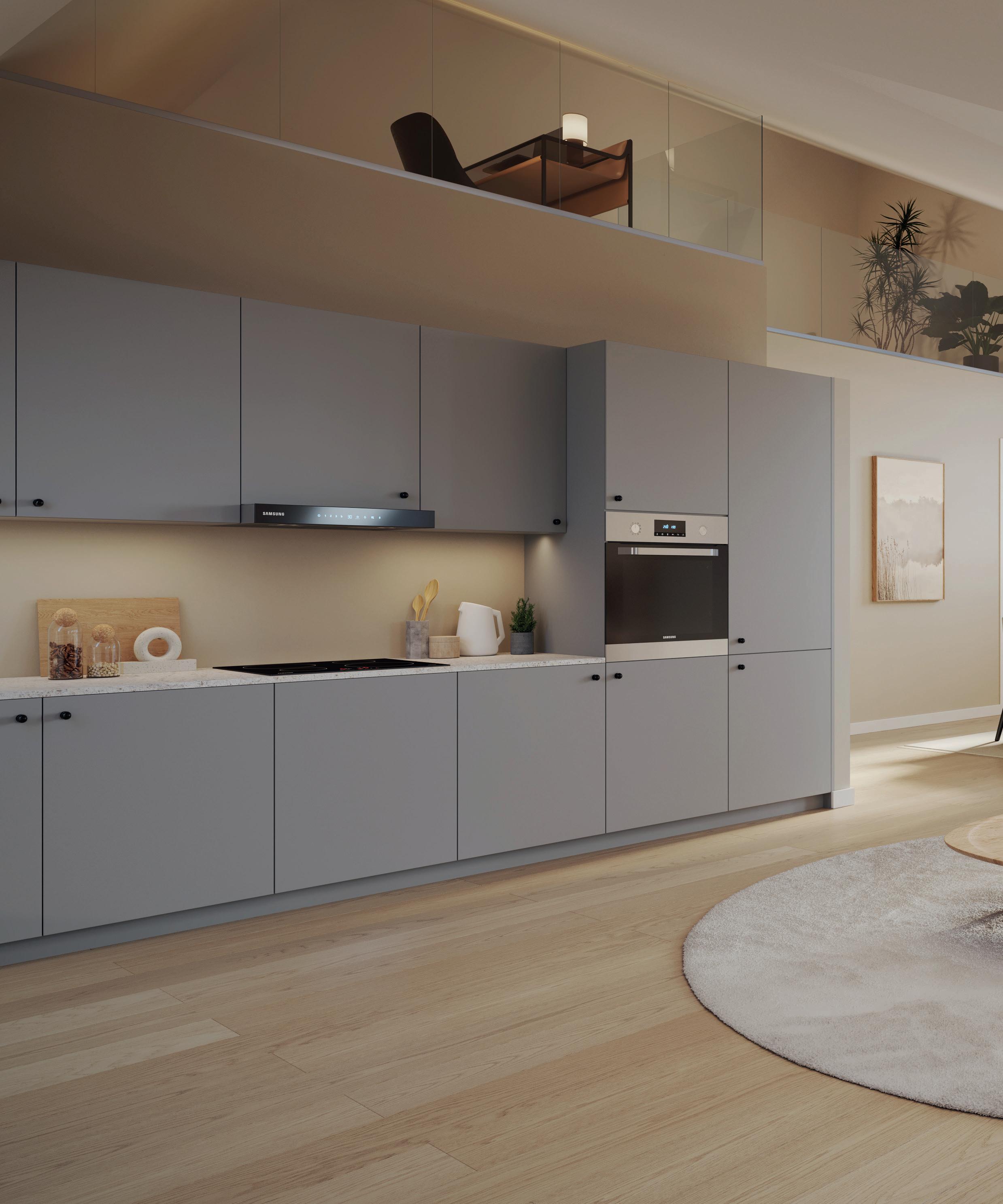Og for deg som virkelig vil ha det unikt, kan vi nevne treromsleiligheten 3G, med ekstra etasje på 32 m² BRA –komplett med stue, soverom og fransk balkong. Et hjem helt utenom det vanlige.