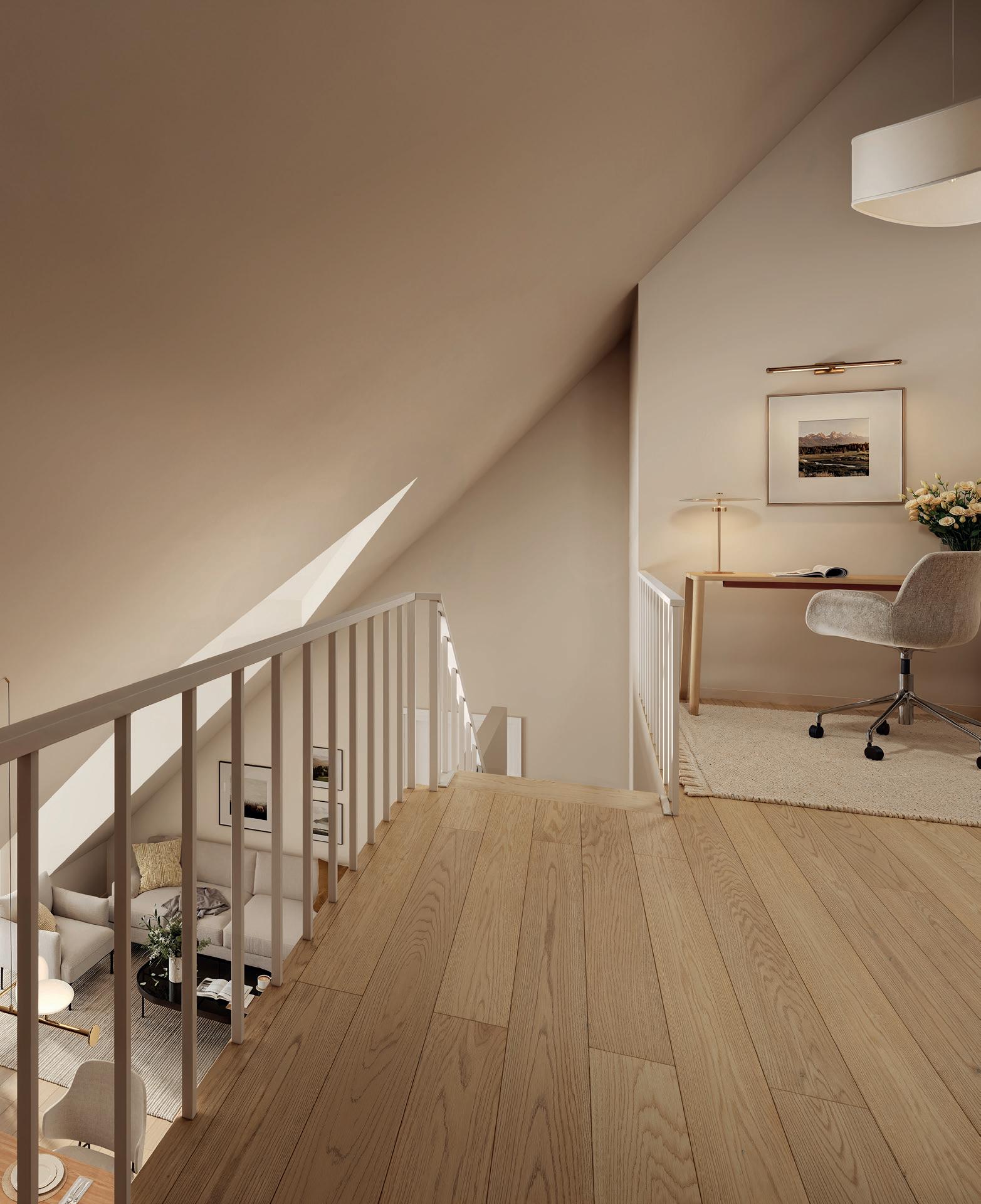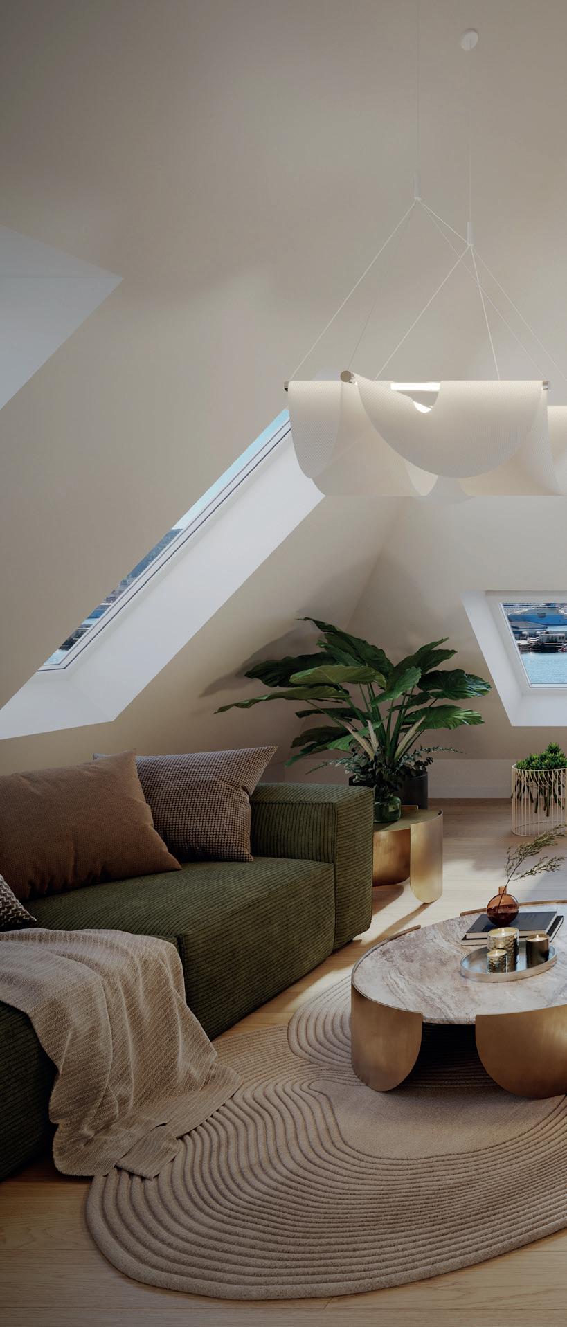 Flere av leilighetene skiller seg ut med egen hems – et ekstra areal som gir luft, fleksibilitet og mange muligheter. Perfekt for TV-krok, hjemmekontor eller gjesterom.