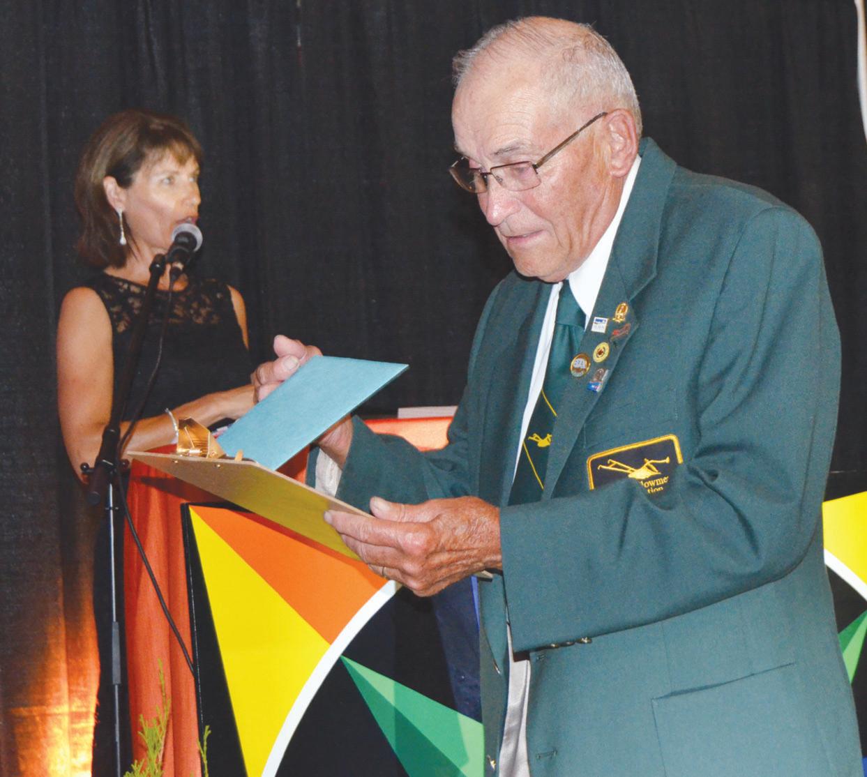 Don Dodds receives his golden clipboard in 2017 from his daughter