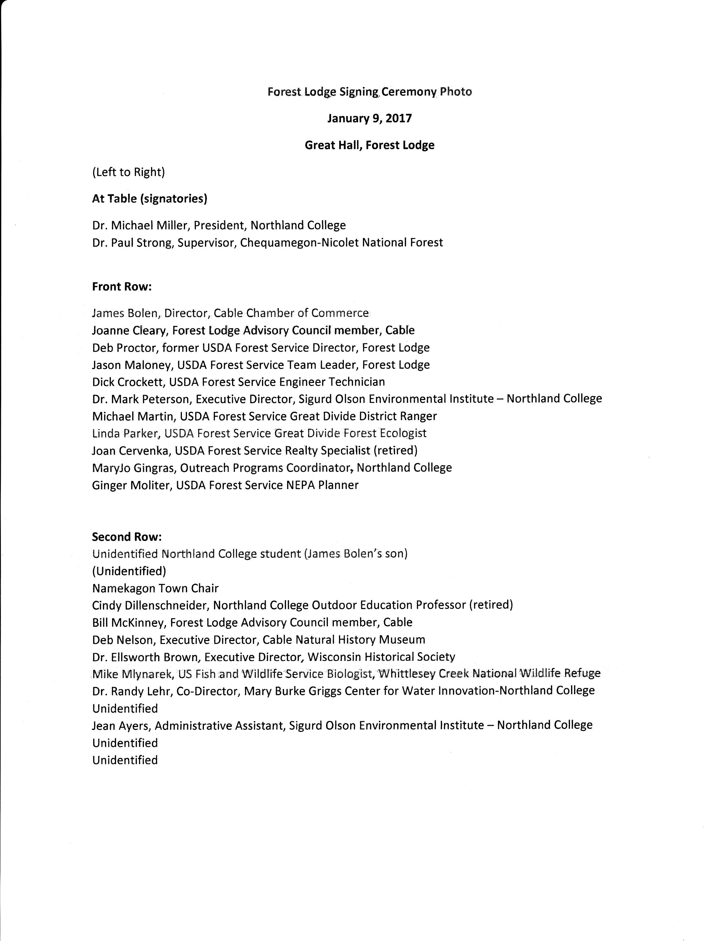 The 2017 Forest Lodge lease signing ceremony photo and list