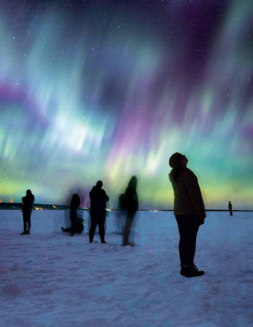 Northland students standing on Lake Superior look up in wonder at the aurora borealis on March 23, 2023. Thanks to the good work of our Skywatchers Club, Northlanders received a heads up on the evening’s coming attraction via an early morning email, which read: “Tonight, a solar storm hitting the earth and some mostly clear skies will create some fantastic northern lights viewing conditions!” They did not disappoint!