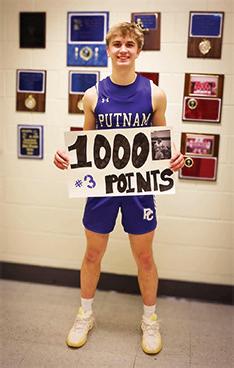 PC R-I senior Mason Morris reached 1,000 career points at the LaPlata Tournament during the consolation game with the Schuyler Rams on Saturday, February 8. [Game recap on pg.