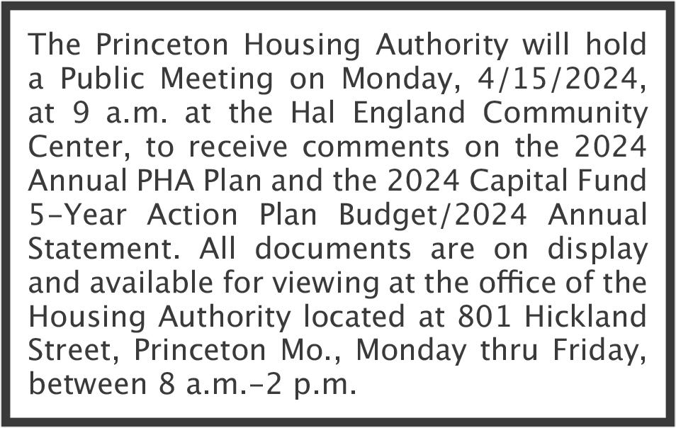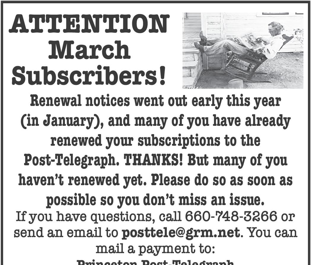 The Princeton PostTelegraph strives for accuracy and fairness in all of its news stories and photo captions. If you feel we have made an error, please contact us at 660748-3266 or posttele@ grm.net (email) to request a correction. If it is found we are in error, we will be happy to publish a correction or clarification.