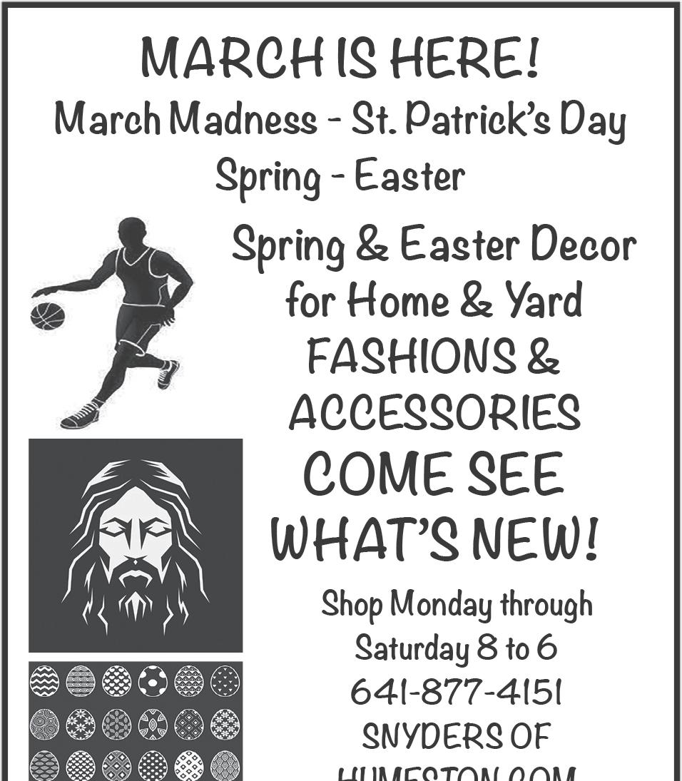 The book fair will be held March 4-8. There is a Little Caesar fundraiser being held March 4-15, and the elementary basketball tournament at North Daviess is also March 4-8. There was a high school scholar bowl at North Davies on Tuesday, March 5. Kindergarten through fifth grade will be going to Bethany for a Williford STEM project on March