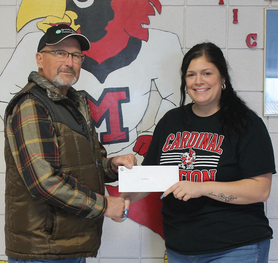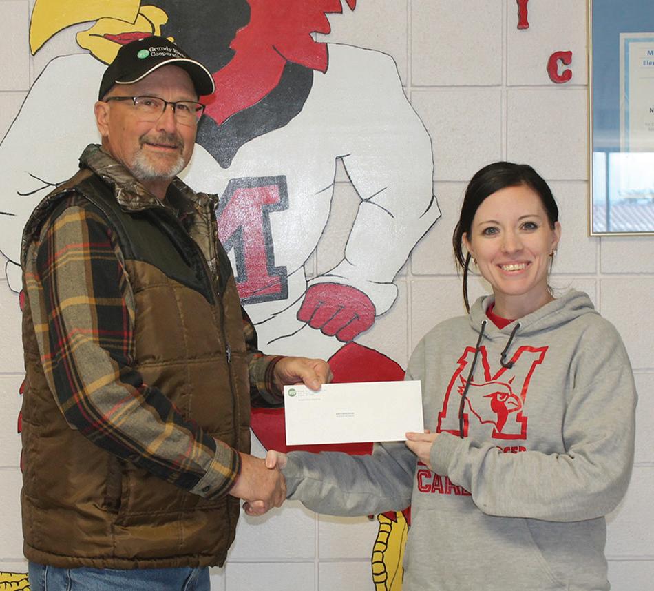 The GEC Community Foundation Inc. awarded a grant to the North Mercer R-3 School for $360 to purchase fine motor skills art kits. Foundation Trustee Joe Hartley (left) presented the grant check to Courtney Scoggie.