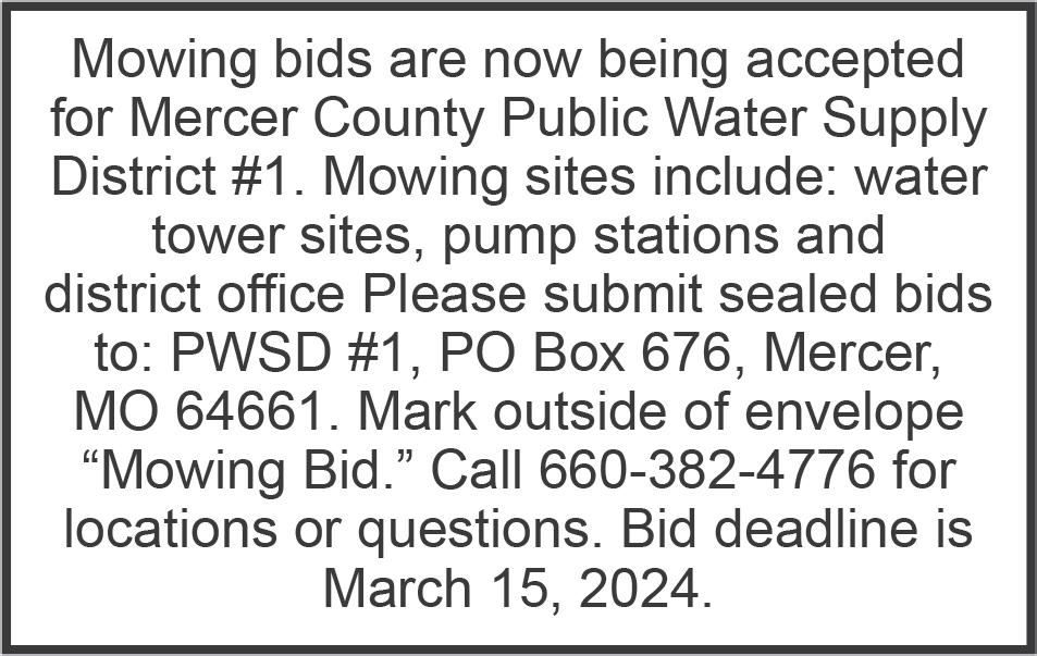 On February 2, 2024, the following individual was appointed the personal represetative of the estate of NORMAN R. BROUSSARD, decedent, by the Probate Division of the Circuit Court of Mercer County, Missouri. The business of the personal representative is: ALLAN BROUSSARD, 9614 S. 183rd Ave., Omaha NE 68136.