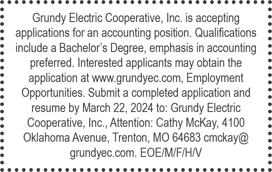 If you have any questions contact Lacey Power at 660748-3335, ext. 291, or Emily Voorhies at 660-748-3335, ext. 267.