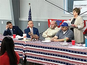 Candidates for state offices spoke at the annual Lincoln Days sponsored by the PC Central Republican Committee. Lt. Governor Mike Kehoe, who is also a candidate for Governor, was unable to attend and sent a letter. L to R: Chris Wright, candidate for Governor; Shane Schoeller, candidate for Secretary of State; Curtis Shields, PC Republican Committee Chairman; Jason Saseman, Adair County Republican Committee Chairman; and State Senator Cindy O’Laughlin.