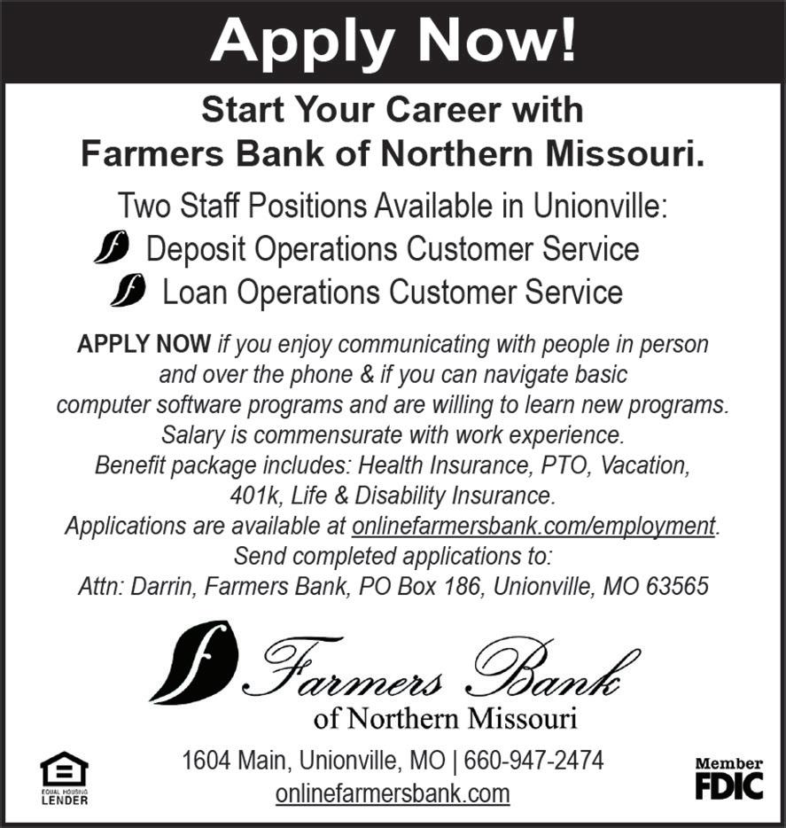 For more information please visit: unionvillefcc.org or call 660-947-2205