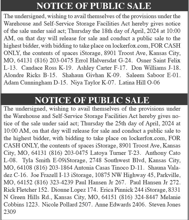 Publishing Dates: 4/3/2024, 4/10/2024, 4/17/2024, 4/24/2024