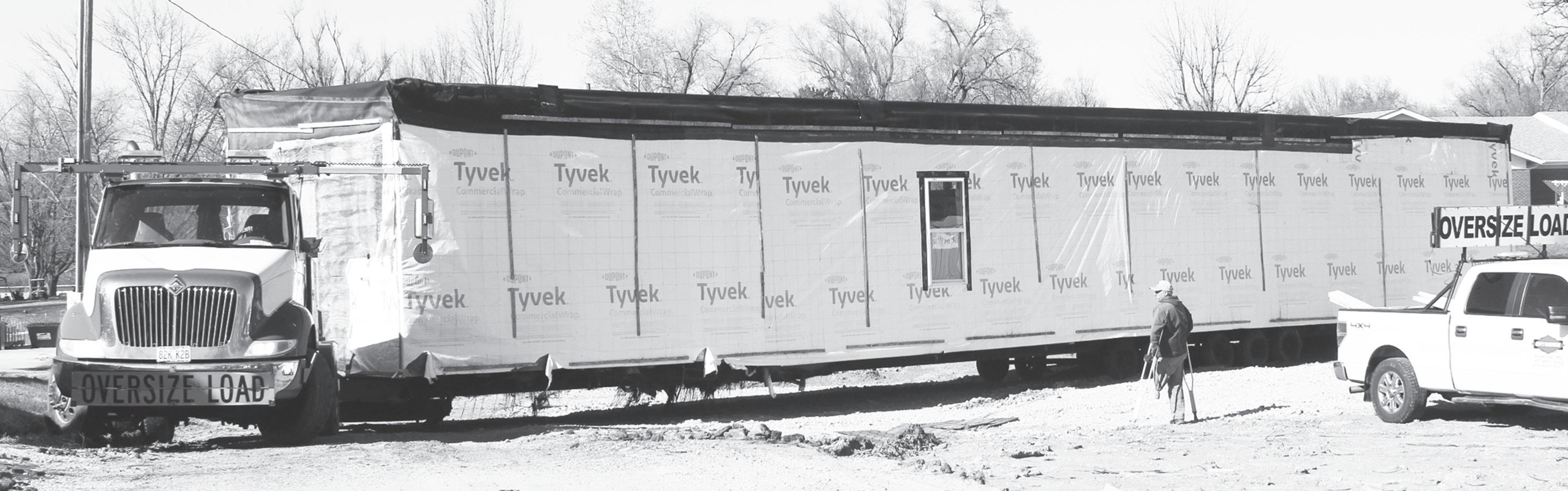 the highway from the Mercer County Library, arrived last Thursday afternoon (April 6). The other half of the building was scheduled to arrive on Monday (April 10), and the two halves are scheduled to be put together during the day Friday (April 14).