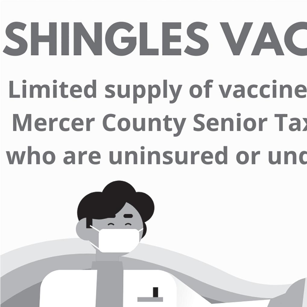 To see if your insurance covers the shingles vaccine, come to the Mercer County Health Department. We will run an eligibility check to see if you are covered. If you are uninsured or underinsured for the shingles vaccine and are 60-64 years of age, you may be able to receive vaccine funded by the Mercer County Senior Tax. Supplies are limited. Call for an appointment at 660748-3630.