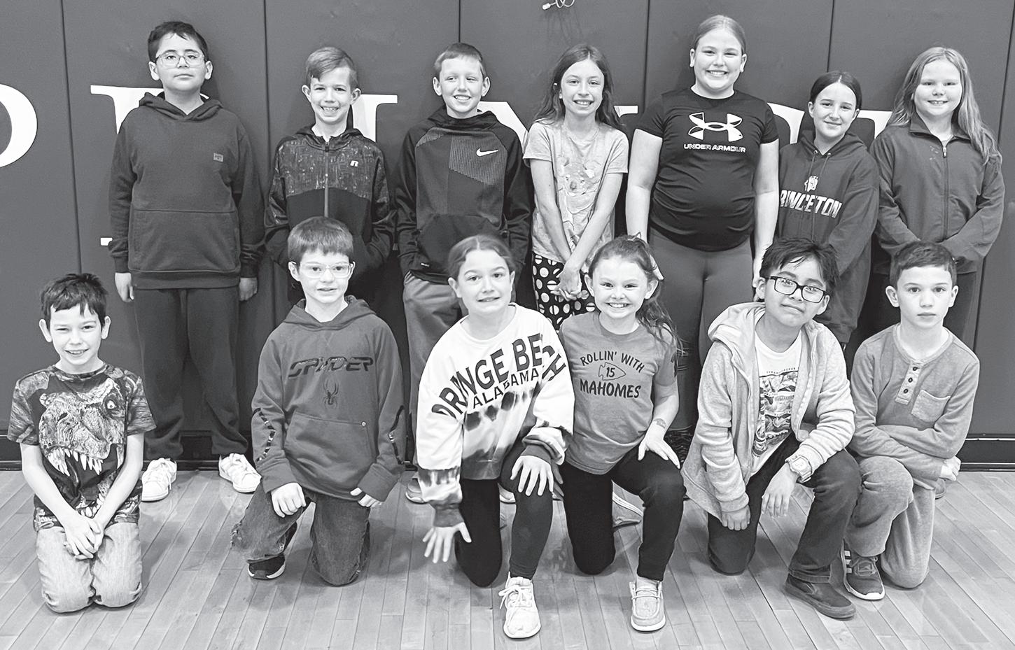 Princeton R-5 Elementary fourth grade students earning the BUG award for the third quarter, from left: FRONT - Ethan Reyes, Bryar Francis, Brynlea Power, Harper Power, Zague Santos and Deegan Renfro; BACK - Santiago Valdes Vera, Callao Powell, Colter Hamilton, Kinsley Collins, Landry Guilkey, Paricia Standiford and Emmalyn Terabelian. Not pictured: Emma Henke, Brayden Ormsby and Christopher Ormsby.