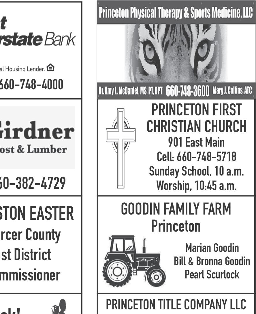 NEED MORE COPIES OF THE PRINCETON POST-TELEGRAPH? BUY THEM AT THESE LOCATIONS: PRINCETON - Snappy’s • Casey’s • EverCare Pharmacy • Hy-Vee Clinic Pharmacy • P-T Office MERCER - Hour Place • Mercer Hometown Market SOUTH LINEVILLE - Randy’s Short Stop