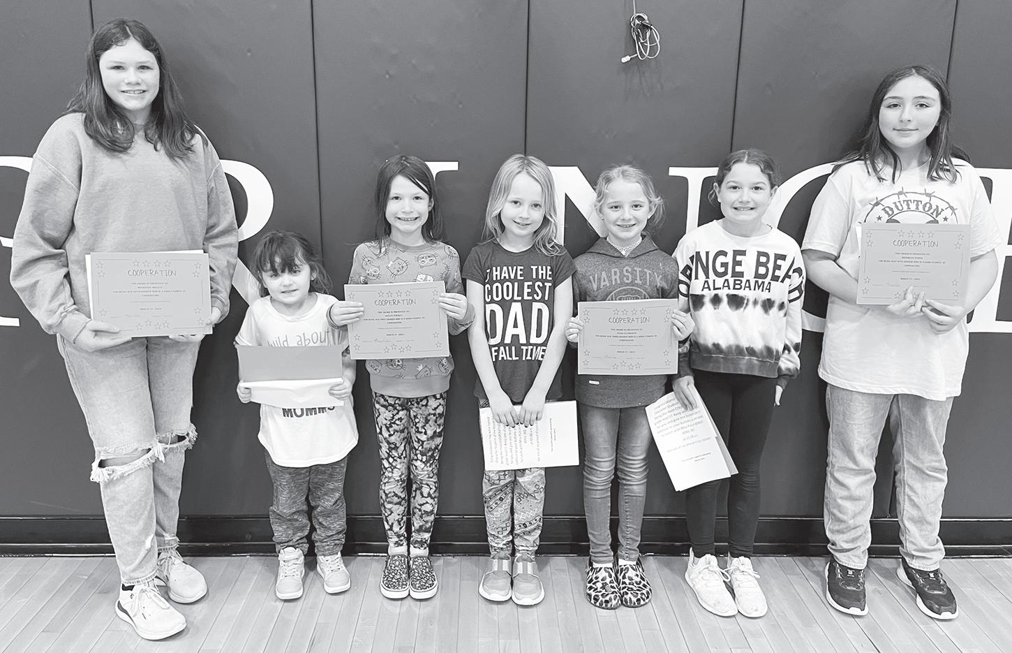 Sixth grade winners, from left: FRONT - Karla Saloma, Brileigh Summers, Shayden Berndt, Aniston Power, Mary Jane Renfro, Brodie Ellsworth and Santiago Montalvo-Cervantes; BACK - Mackenzie Willett, Addisyn Illg, Annie Martin, Adysen Girdner, Jozie Estes, Aalayah Hofius, Cadence Boles, Ben Campbell, Ainsley Cowan and Lucas Girdner. Not pictured: Brooklyn Ormsby.