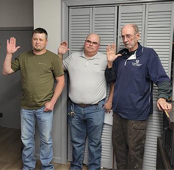 The recently re-elected City of Unionville officials were sworn into office by City Clerk Linnette Caley at the opening of the Thursday, April 18, meeting. Pictured (L to R) are Alderman Eric Lutz, Alderman Jason Hill and Mayor Charley Bill Pittman.