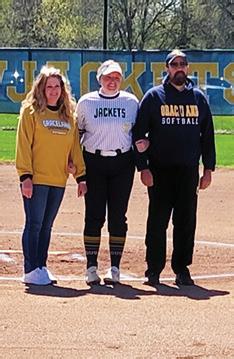 On Sunday, April 20, Graceland U. Softball recognized senior squad members. Pictured above is Sammi Bradshaw, PCHS Class of 2020, with her parents Sarah and Shannon Bradshaw. Graceland swept Benedictine (KS) in a double header, 6-5 and 5-0, with Bradshaw pitching the shut out, her second of the season. Other area senior Graceland softball players recognized were pitcher Chloe Buckallew and cather Marissa Buckallew, Schuyler County Class of 2020.