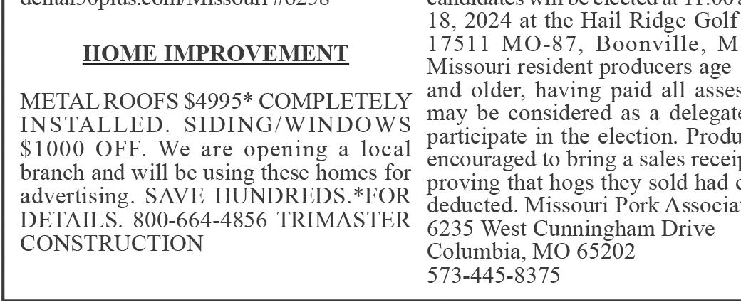 Heavy Nylon and are purchased through the American Legion. Now Available at the Unionville Republican Made in the U.S.A. American Legion Auxiliary Poppy Sale Starts May 17th. Please Help support our Veterans GET A FREE ESTIMATE 855-544-5286 Keep your home safe with concrete repair BEFORE AFTER Rouse Heating & Cooling 660-216-9959 Electrical, Plumbing, Trenching and Backhoe Service. Sell & Install AIREASE furnace and A/C. Fujitsu mini-split heat pumps