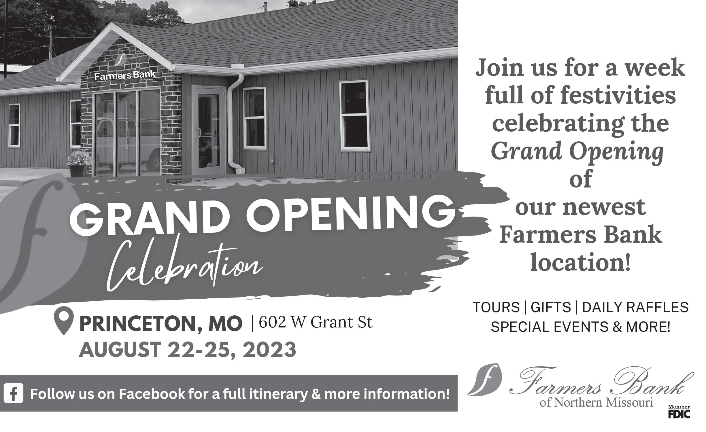 A few finishing touches remain before the new Princeton branch of Farmers Bank of Northern Missouri is ready for business, and that day is coming soon. The bank, located on the south side of Grant Street (U.S. 136) across from the Mercer County Library, plans a fourday celebration the week after next (see ad on Page 6).