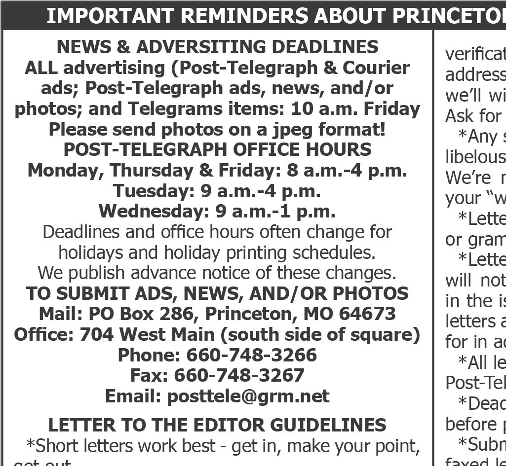 1001 Kentucky Street Princeton, Missouri 64673 660-748-3231