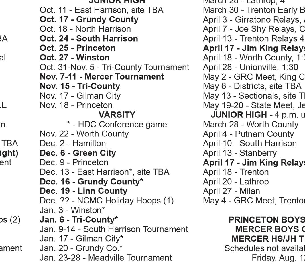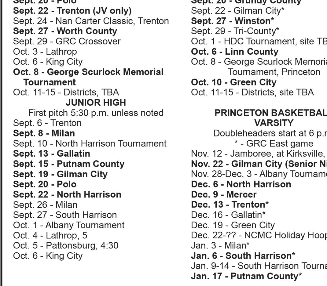 Princeton, Mercer and Cainsville start 2023-24 academic year Aug. 22; Spickard school classes start Aug. 23