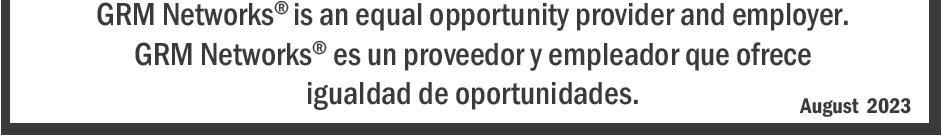 GRM Networks® is an equal opportunity provider and employer. GRM Networks® es un proveedor y empleador que ofrece igualdad de oportunidades.