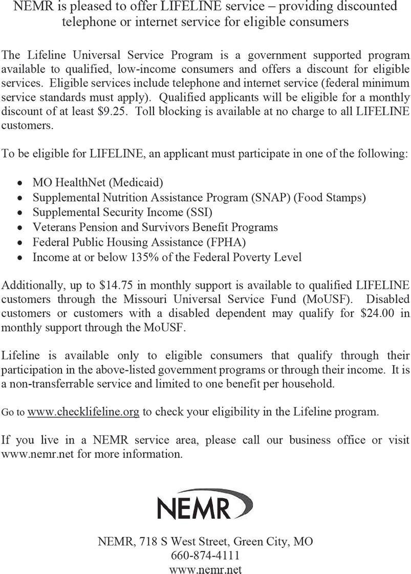 The Unionville Republican & Putnam County Journal (USPS 649240) Established July 1865 Published weekly by Blackbird Creek Printing Company, 111 S. 16th Street, Unionville, Missouri. Periodical postage at the Post Office in Unionville, Missouri 63565 POSTMASTER: Send address changes to: The Unionville Republican, P.O. Box 365, Unionville, MO 63565-0365. Ron Kinzler, Publisher Karen Bradshaw, Editor Mindy Clark, Advertising northmissourinews.com Member of the Missouri Press Association Subscription Prices: $32.50/year in-county addresses, $36.50/year out-of-county; $27.00/ year on-line. All subscriptions include sales tax where applicable and must be paid in advance.