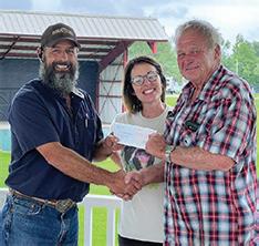 (L to R) MFA Propane Manager Tim Findling presented a grant check to PC Fair Board members Anna and Greg Fleshman. The grant was awarded to make the grandstand ADA compliant.
