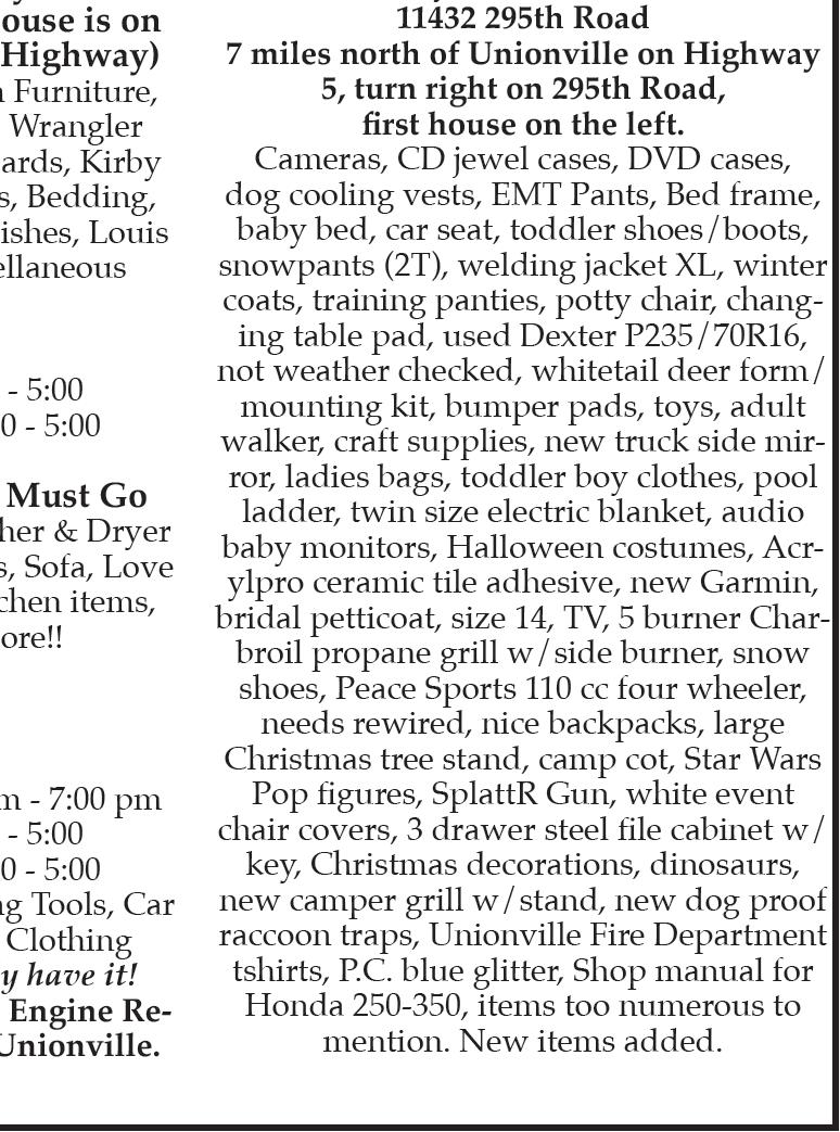 Journal “157 years of continuous service to Putnam County” www.unionvillerepublicanonline.com Volume One Hundred Fifty-seven, Issue Number 14 October 4. 2023 75¢ Including Sales Tax Subscribe to the Unionville Republican TODAY $32.50 in-county $36.50 out of county Call TODAY 660-947-2222 Mastercard • VISA Discover accepted